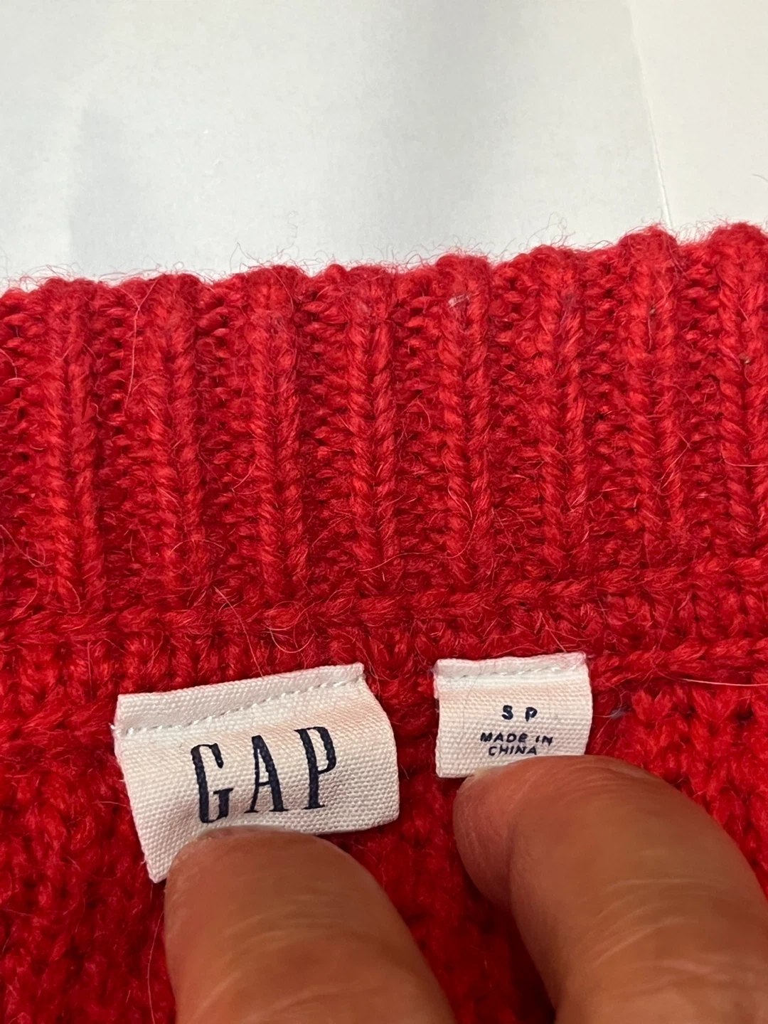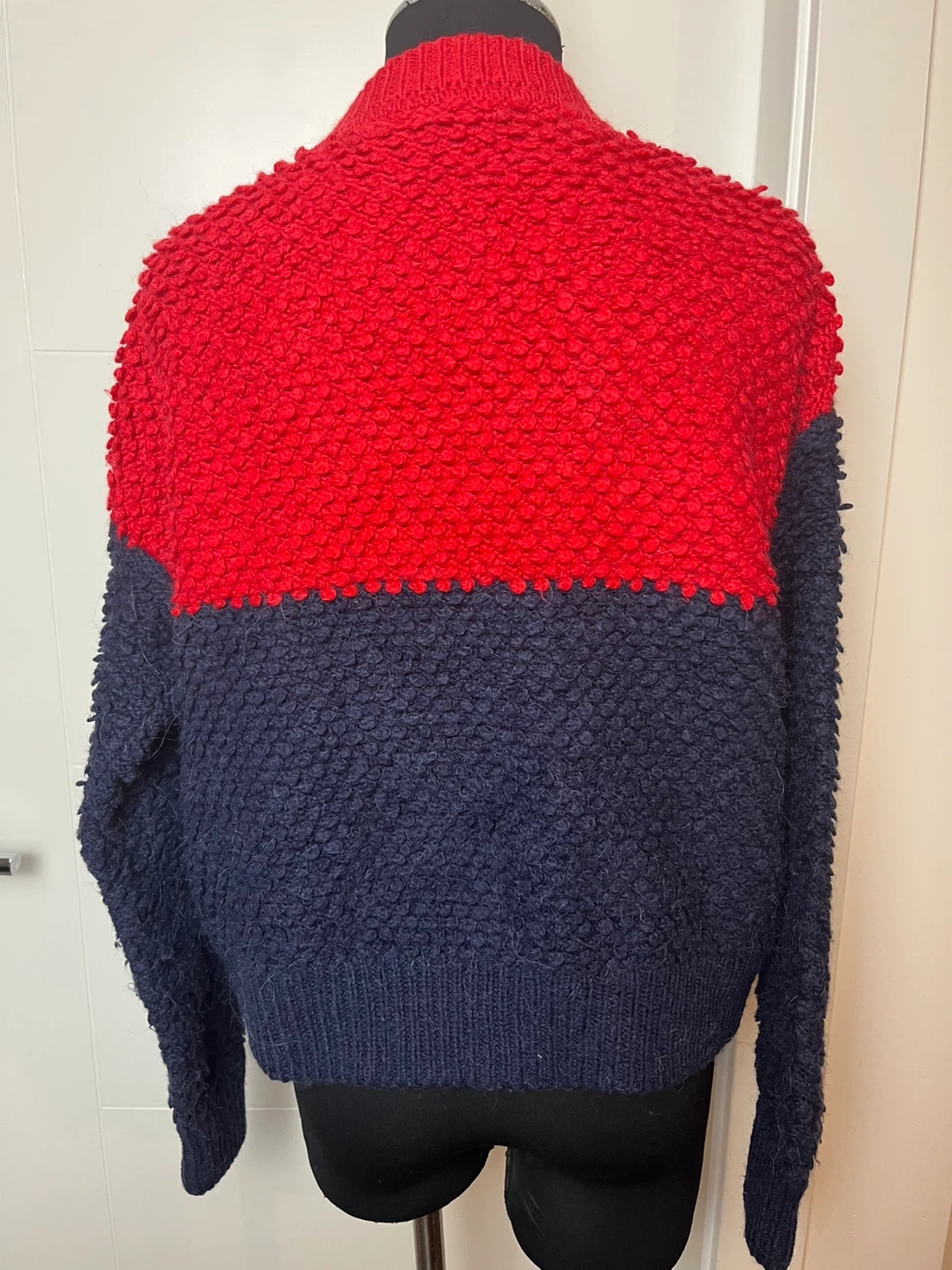 31Cozy GAP cardigan in a fun colour block design! It's a size small and features a unique textured knit. The colours are a vibrant red and a deep navy blue. Perfect for layering on chilly days! Pick up at Brow of the Hill near 10th and Royal, New Westminster. Check out my other listings!