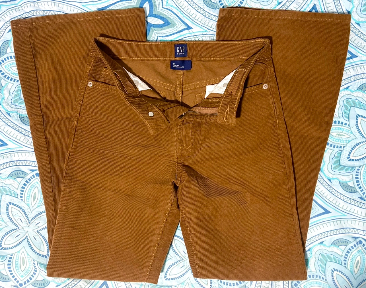 Gap Kids Size 14 - can fit size 20-24” waistline. ‘70s Flare Brown corduroy pants with a bell bottom style. The pants have a zipper and button closure.