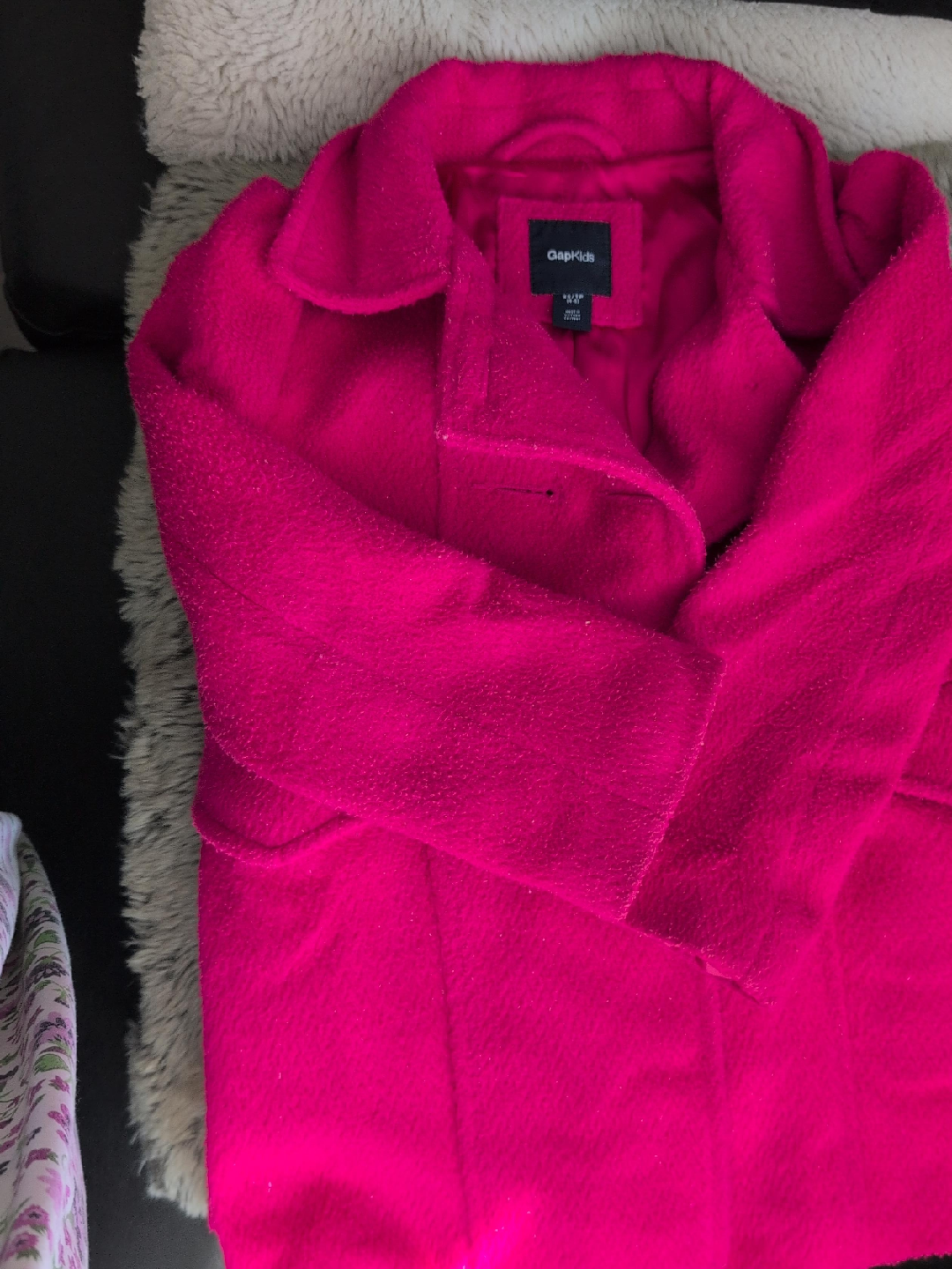 60Selling a cute Gap Kids coat in a vibrant hot pink colour! The size is 4/5. It's a stylish and warm coat perfect for your little one!