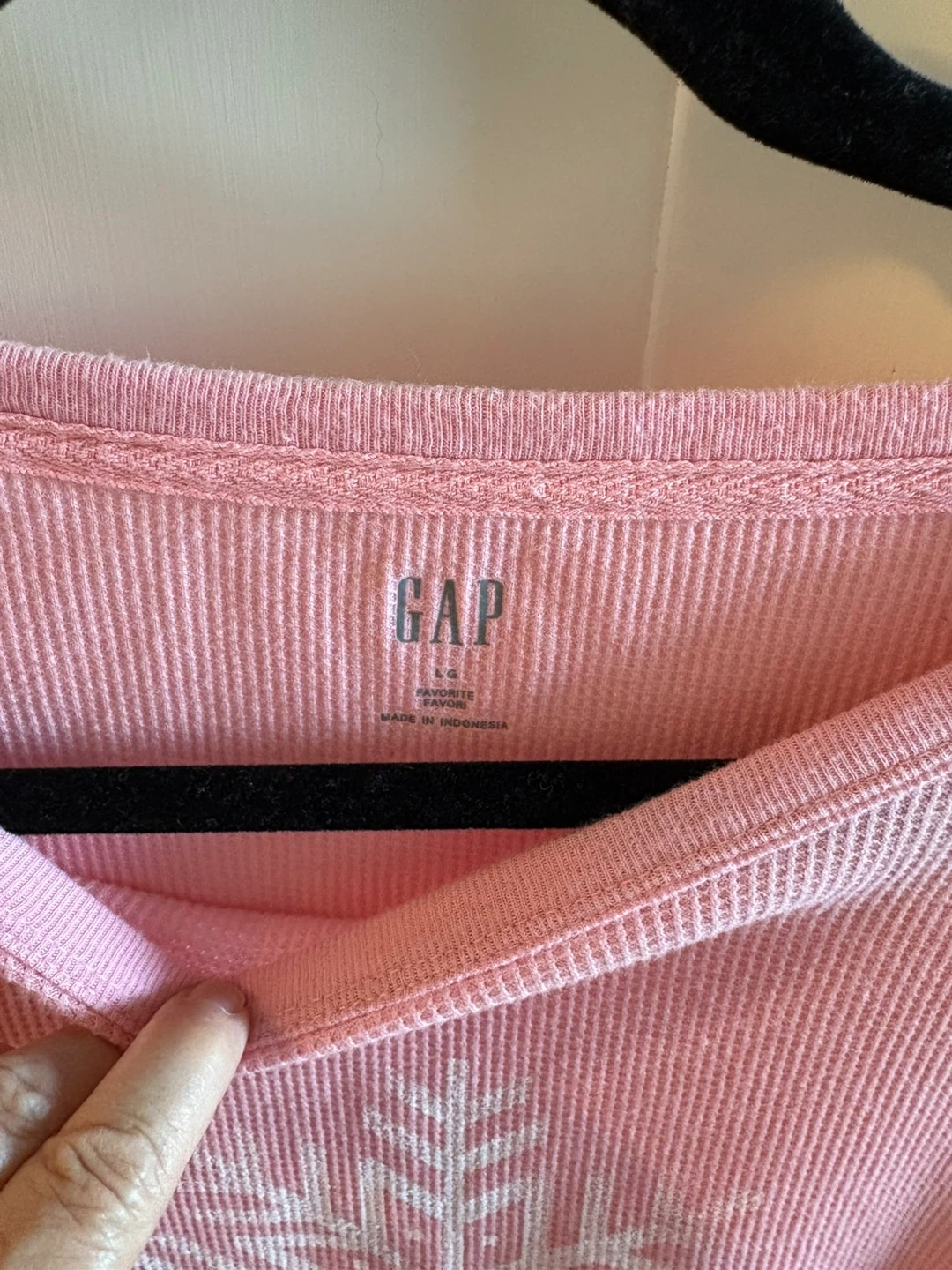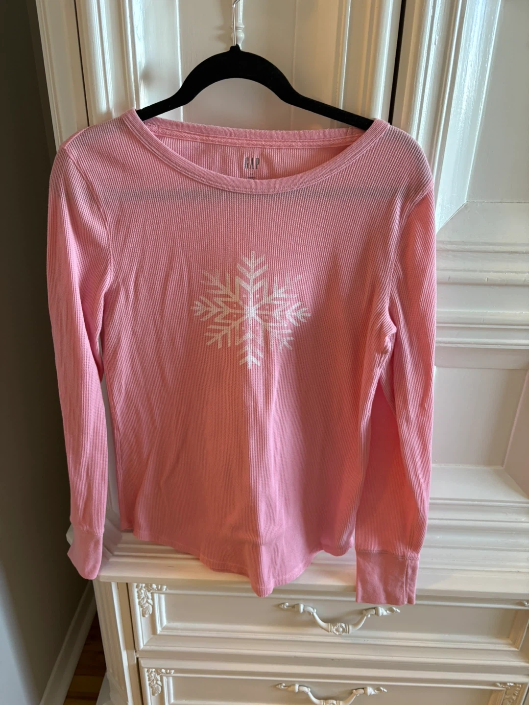 A cute pink long sleeve top from GAP! It's a size large and features a snowflake design on the front. Perfect for layering or wearing on its own. Smoke and pet free home. Niagara Falls North location. Cash only