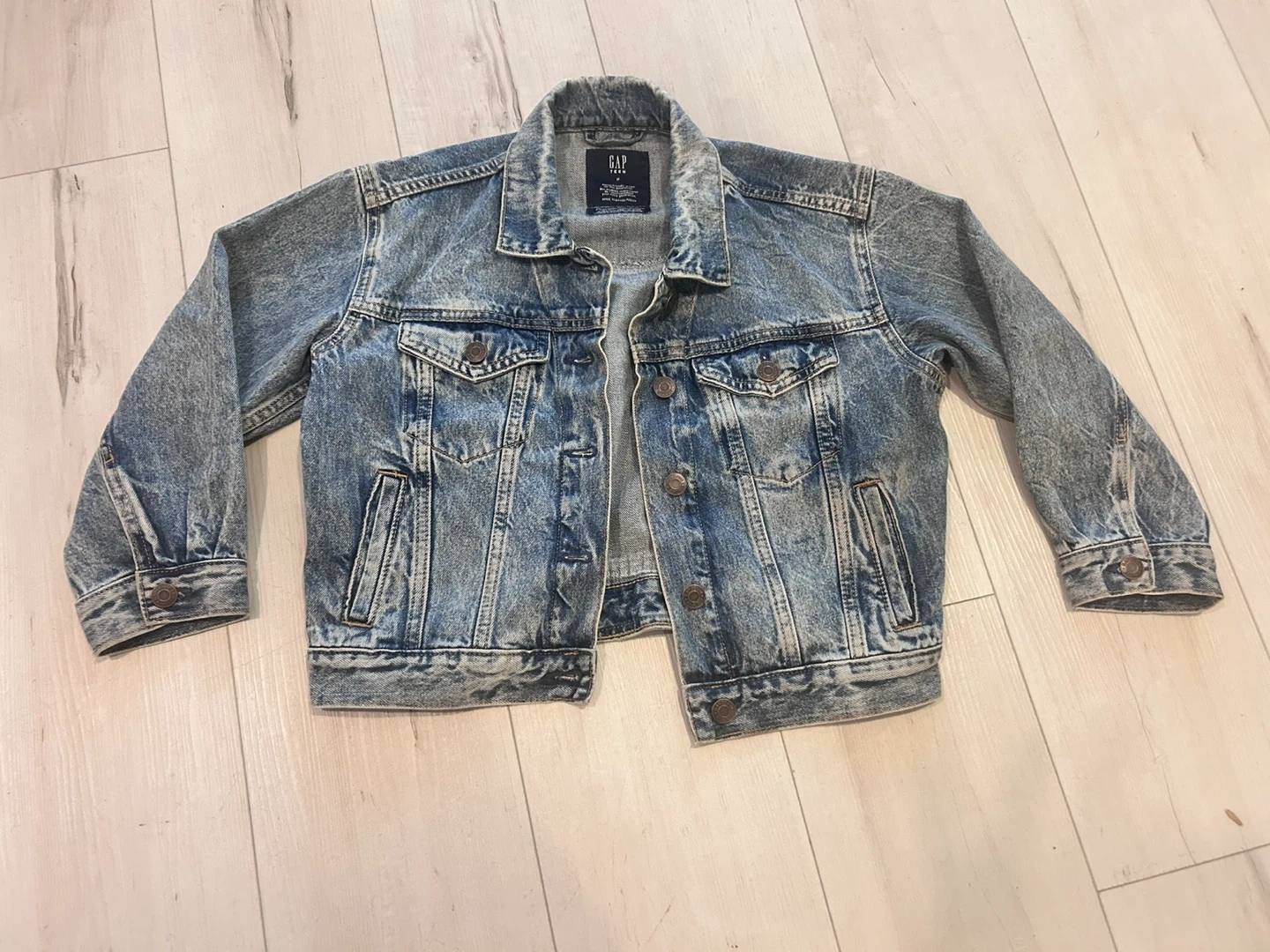 65Selling a Gap Teen denim jacket in size M. It's in great condition and made of durable denim material. Perfect for layering or wearing on its own!