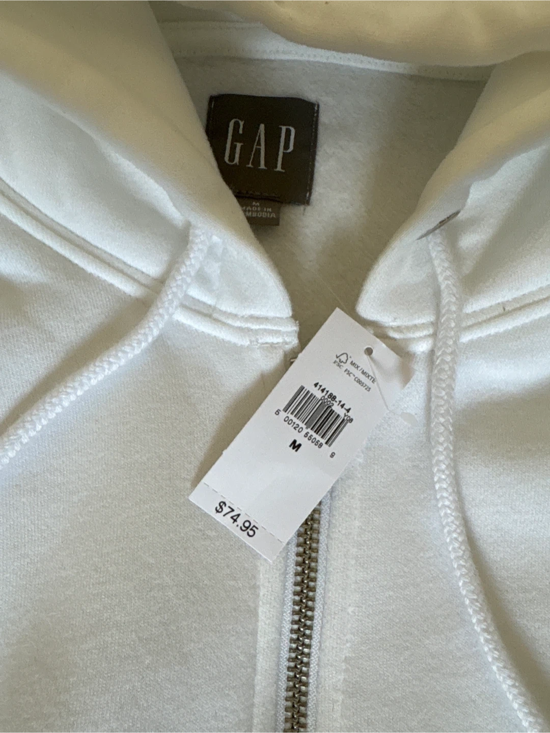 244GAP White Full-Zip Hoodie Size: Medium Condition: Brand New