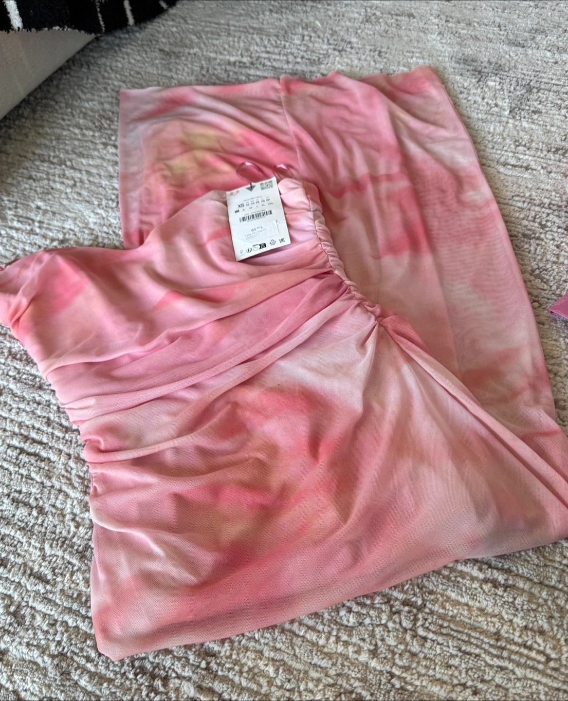 Selling a Zara pink tie dye mesh dress in size XS. This dress is perfect for a night out or a special occasion or vacations. It's made of a lightweight and breathable material, making it comfortable to wear.