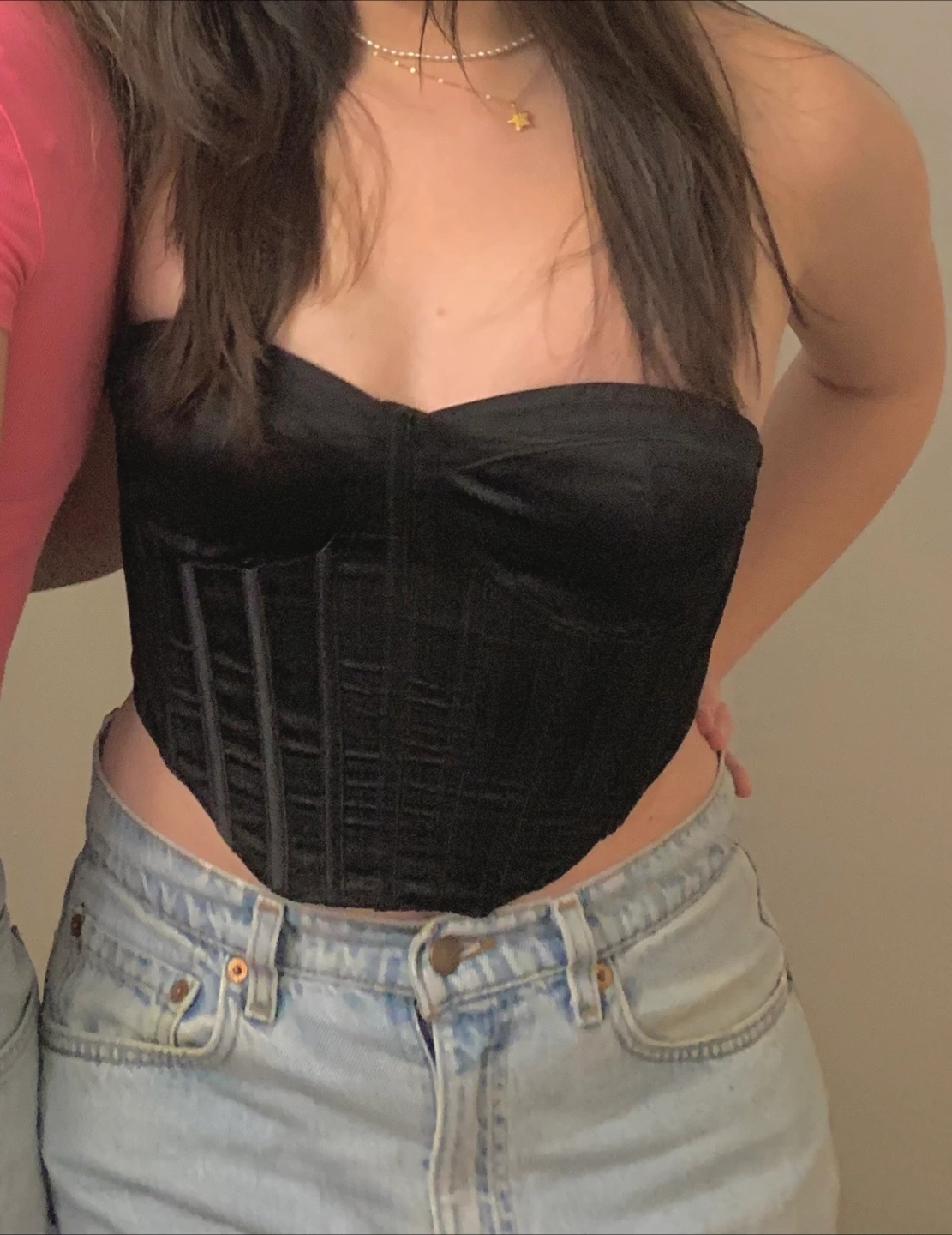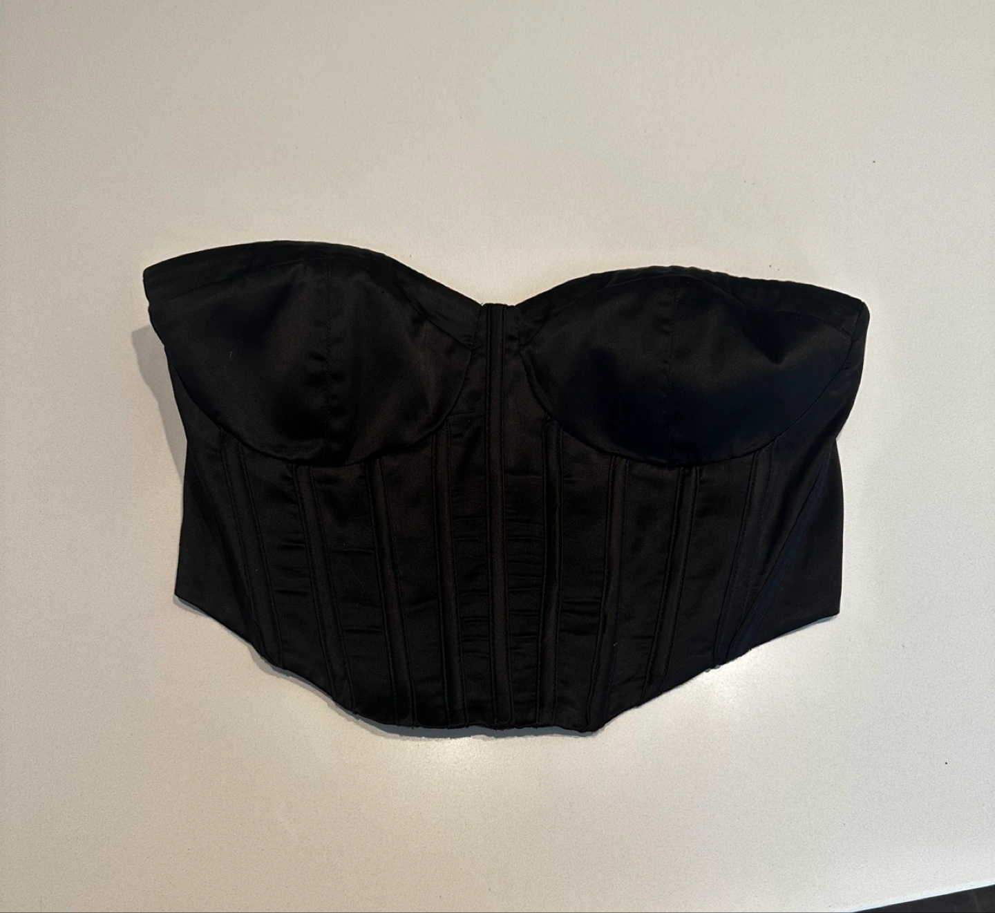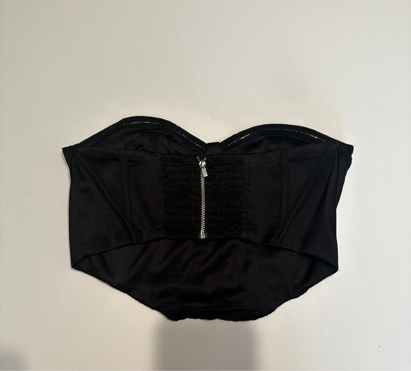 Selling a cute black corset style bustier top from Garage in size small! It's in great condition and would be a super addition to any outfit. The material feels nice and it has a zipper in the back. Includes lining on the inside to keep the shirt up while you wear it. Let me know if you have any questions!