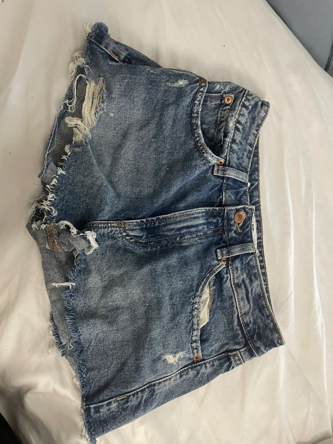 Garage denim shorts with a distressed look. They are in good condition and ready for a new home