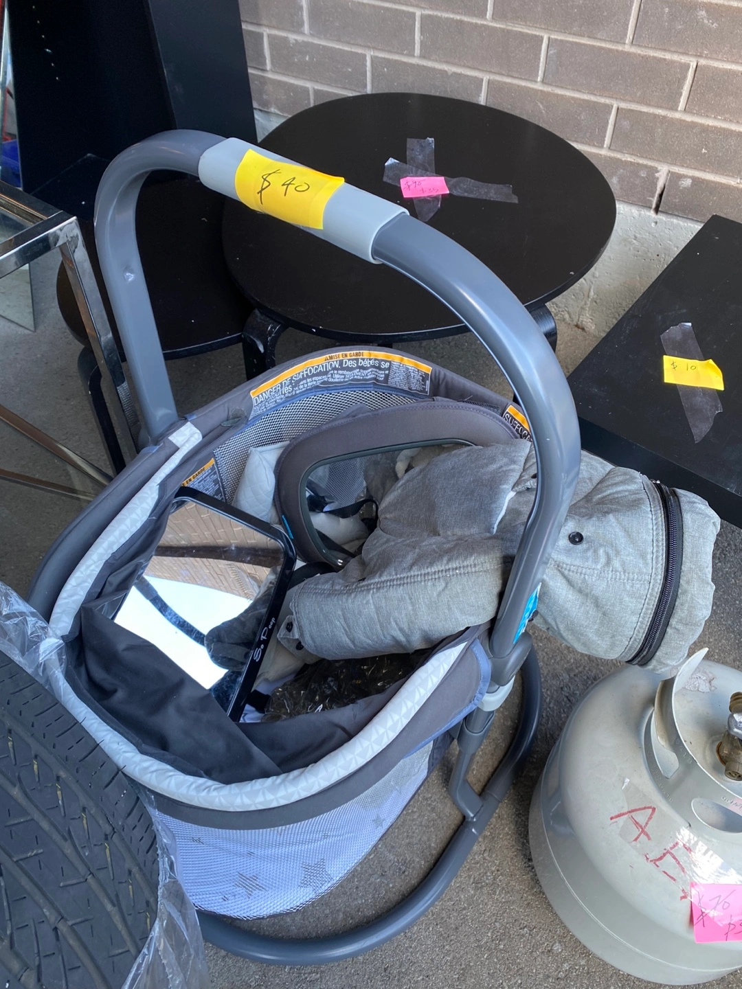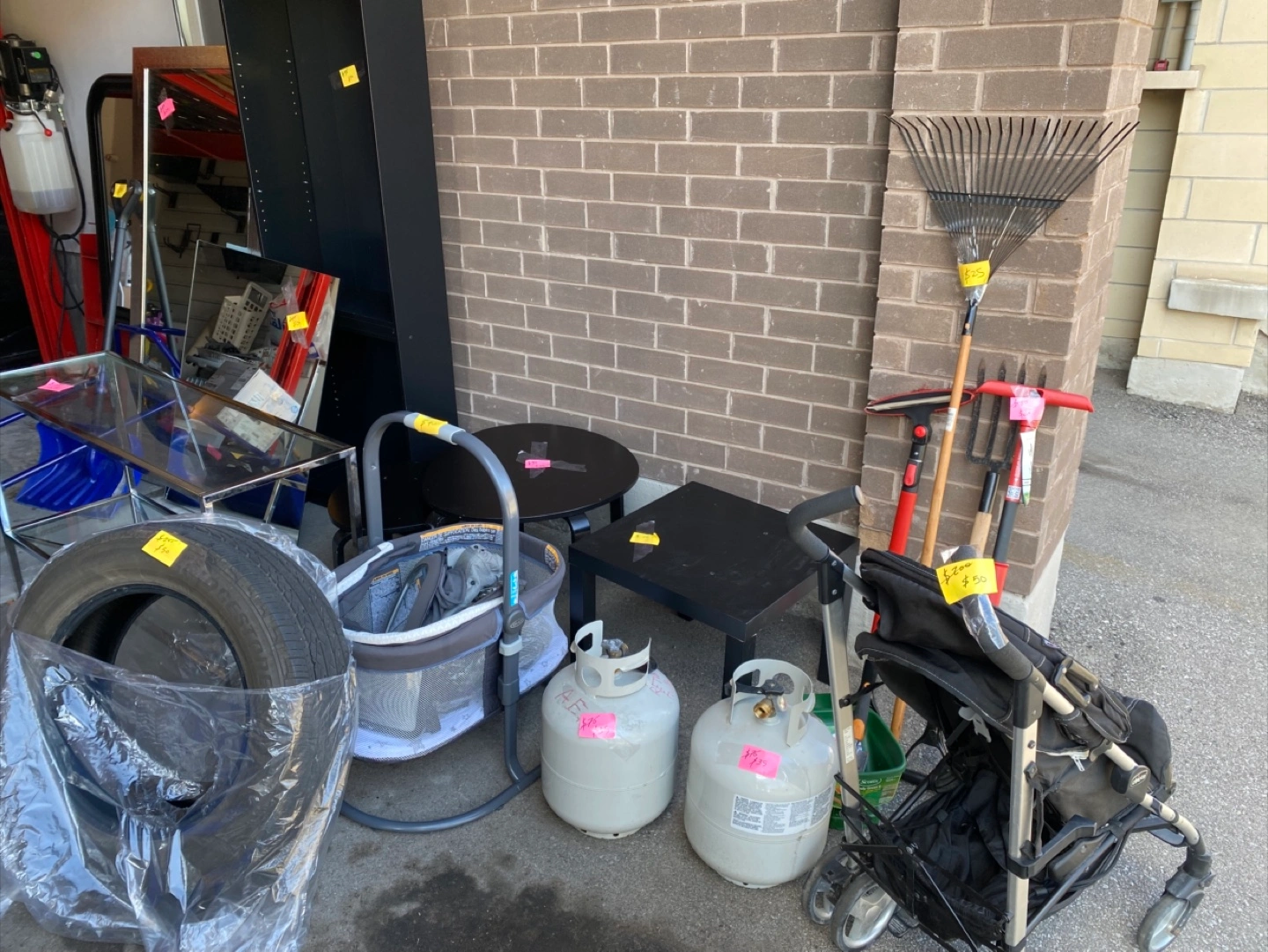 Fridge $300 Deep freezer $150 Boxed Gym Rack $300 Black leather queen bed + matress + free night stand ($150) Graco Baby Stroller – $50 • Propane Tank 1 – $35 • Propane Tank 2 (labeled $70) – $35 • Garden Rake – $25 • Manual Lawn Aerator – $20 •. Weed remover - $20 • ikea Small Square Black Side Table – $10 • Baby Rocker/Bouncer Seat – $40 • Glass Console Table – $40 • Bridgestone Tire – $50 • Ikea Tall Black Bookcase Shelf – $40 • Set of Two Round Black Nesting Tables – $35 • Wall Mirror (leaning glass type) – $20 •. Small snow shovel ($15) •. Large snow shovel ($10