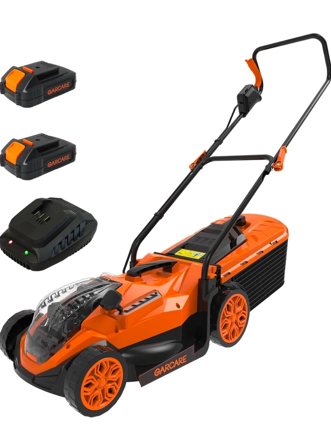 72Selling a Garcare cordless lawn mower in great shape. It comes with two batteries and a charger, so you'll be ready to tackle your lawn right away! The orange colour is quite vibrant. It's easy to use and perfect for keeping your yard looking tidy