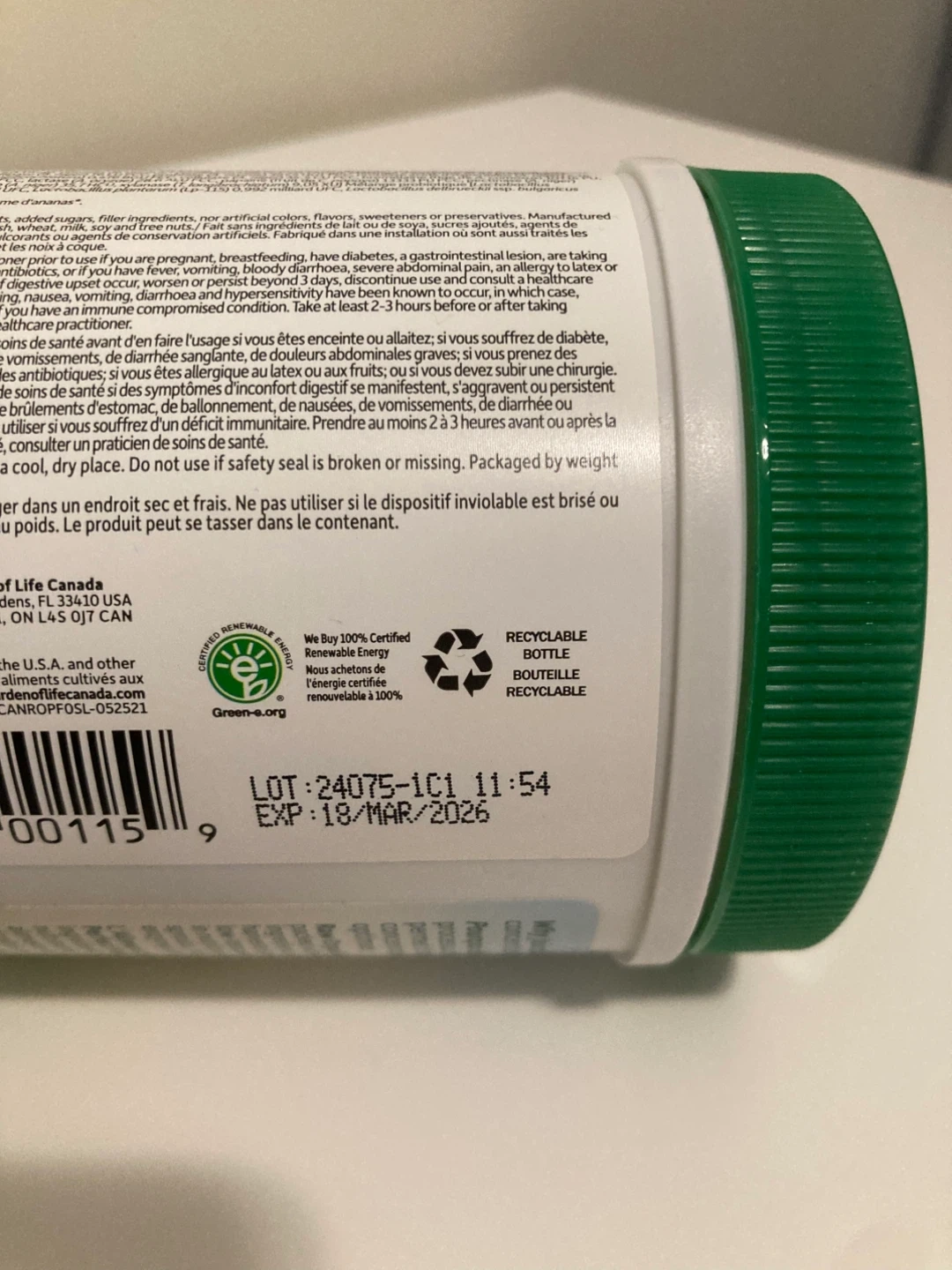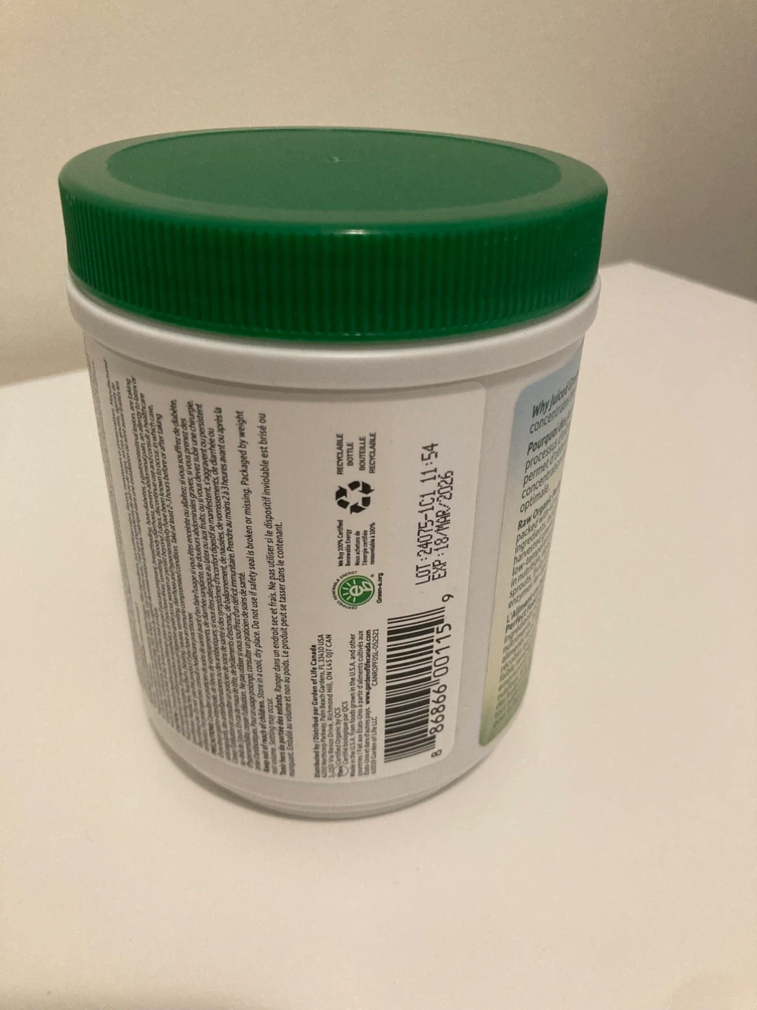 182Selling a container of Garden of Life Raw Organic Perfect Food. It's a green superfood powder with 30 servings. Expiry date is March 18, 2026 Kept in a dark, cool place. Smoke and pet free environment. Cash and Pick up only.