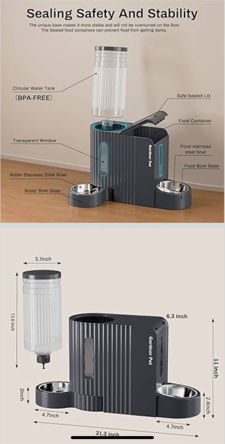 Gardner Pet Adjustable 2-in-1 Food and Water Dispenser
