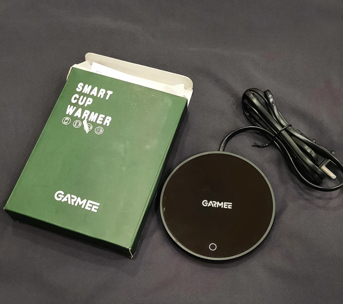 New GARMEe smart cup warmer. Keeps your beverage warm. Includes power cord. Compact and convenient design.
