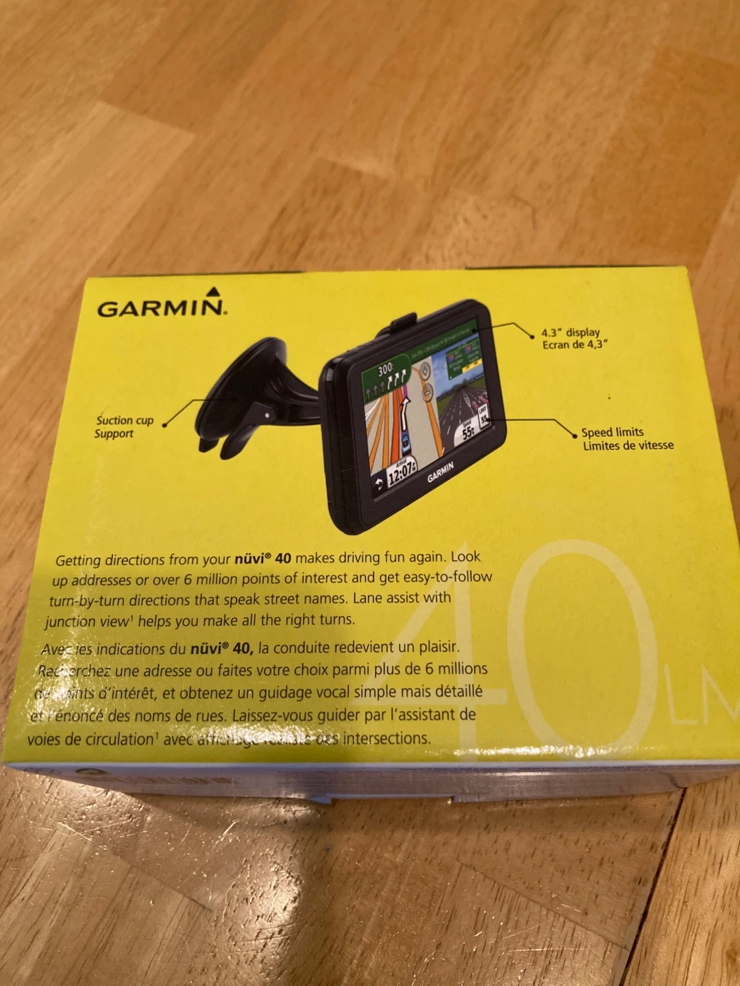68Selling a Garmin nüvi 40 GPS navigation system! It comes with the box and all included components like the suction cup support and charger. NEW *Never used*