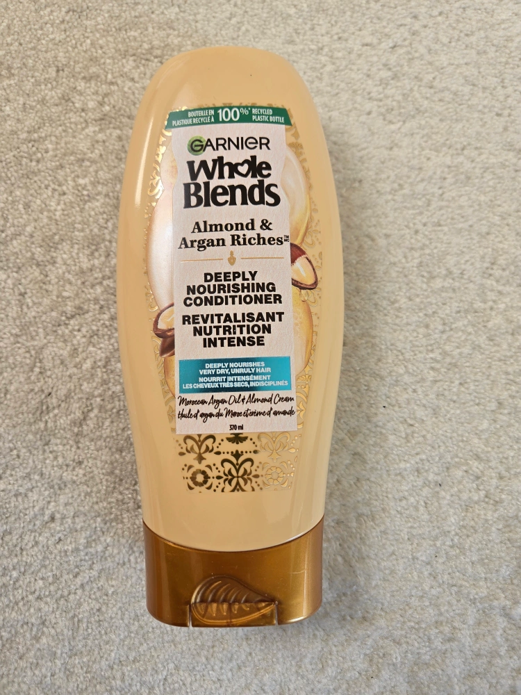 85Selling a bottle of Garnier Whole Blends Almond & Argan Riches Deeply Nourishing Conditioner. It's a 370 ml bottle. New unused pickup at 63rd West & Yukon St Or Marine Drive Station.