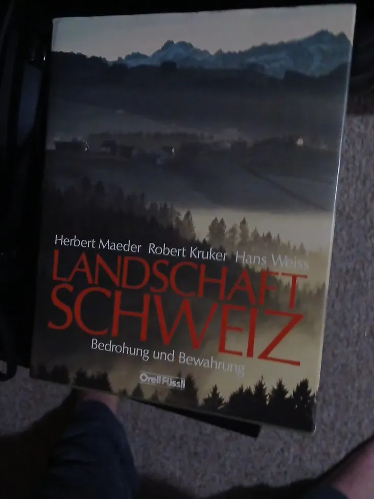 This book focuses on the landscape of Switzerland, discussing its threats and preservation. It's authored by Herbert Maeder, Robert Kruker, and Hans Weiss.