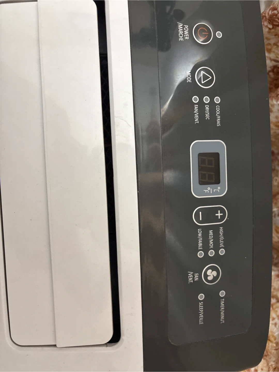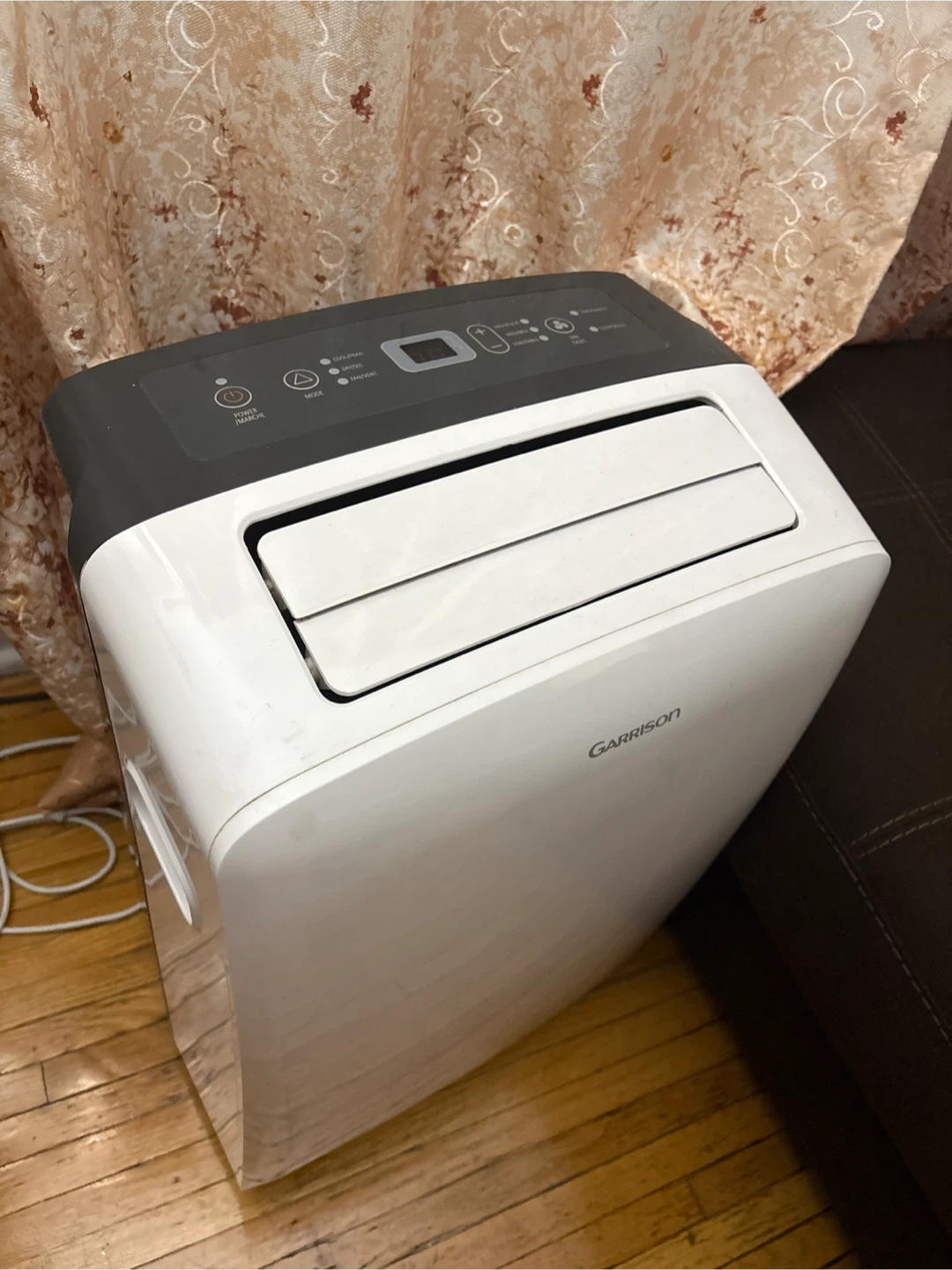 Selling a Garrison portable air conditioner. It's in great shape and ready to keep you cool this summer! Features include multiple modes like cool/frais, fan/vent, and dry/sec, plus adjustable fan speeds and a timer function