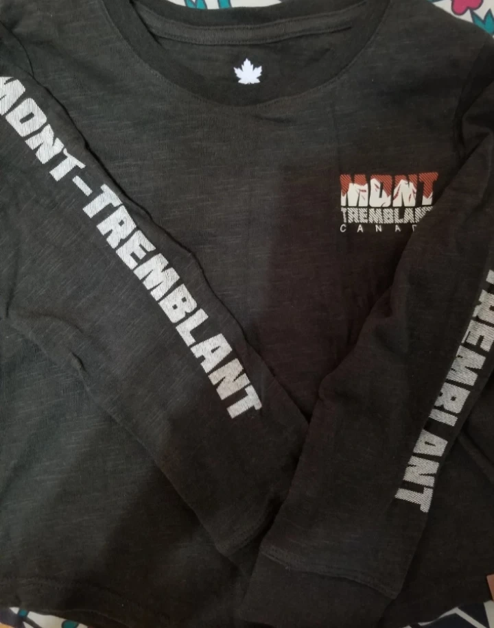 This dark green long-sleeved shirt features "MONT TREMBLANT CANADA" graphic on the front and "MONT-TREMBLANT" printed down the sleeves. It's a great souvenir from Mont Tremblant. Made of a comfortable cotton blend.