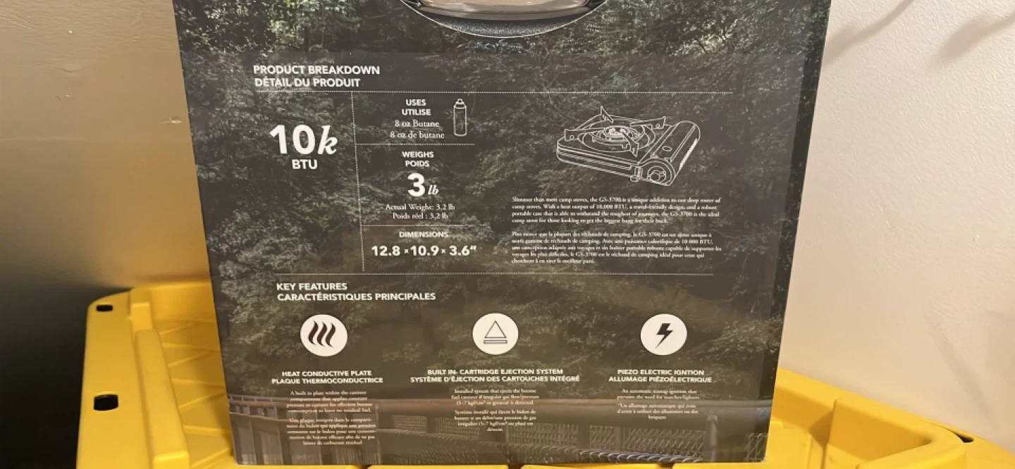 60Selling a GAS ONE GS-3700 portable butane camp stove, perfect for camping or outdoor cooking! It comes with butane gas canisters. The stove features a heat conductive plate, a built-in cartridge ejection system, and piezo electric ignition. It delivers 10K BTU. Dimensions are 12.8 x 10.9 x 3.6 inches. Comes with the original box