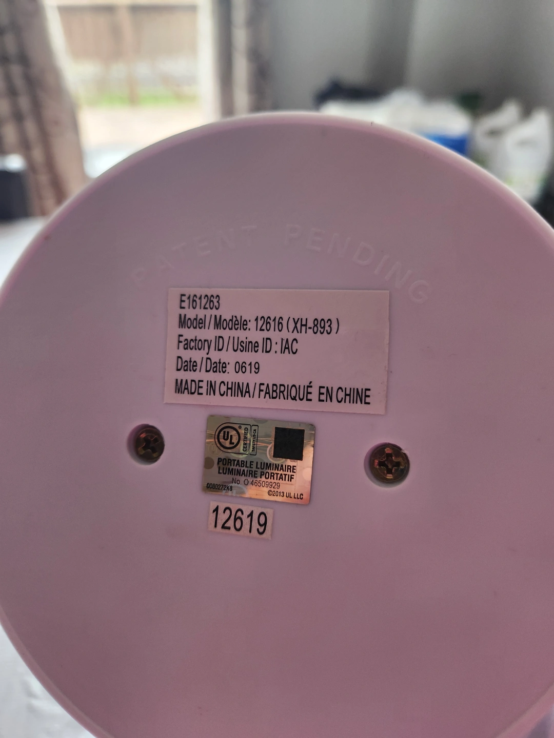 Portable desk lamp. White plastic construction. Flexible gooseneck for adjustable positioning. Includes a standard lightbulb. Simple design, perfect for studying or working.
