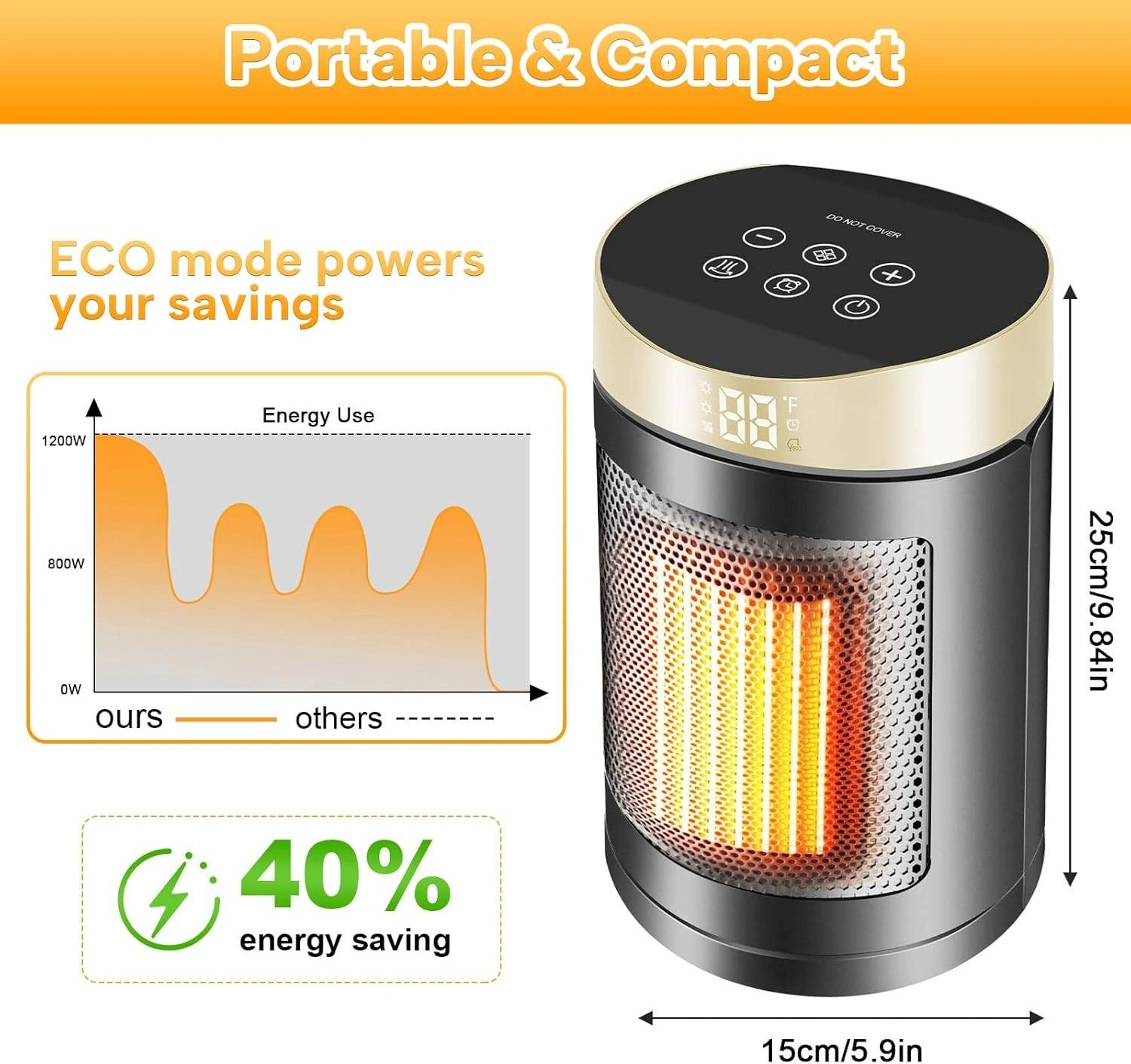 CERAMIC HEATING: Advanced ceramic heating technology with 1500W power output for efficient room heating