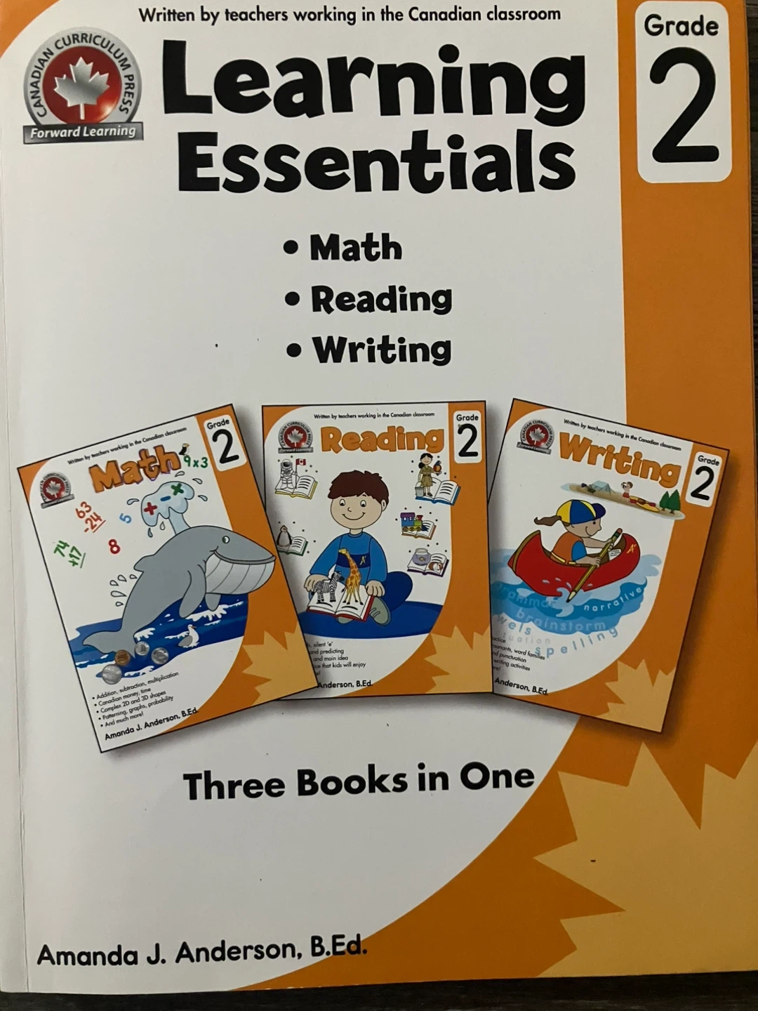 This is a set of three Grade 2 "Learning Essentials" books covering Math, Reading, and Writing. Written by teachers for the Canadian classroom. The books include a variety of exercises and games. Subjects covered are addition, subtraction, multiplication, money, time, geometry, patterning, and probability.