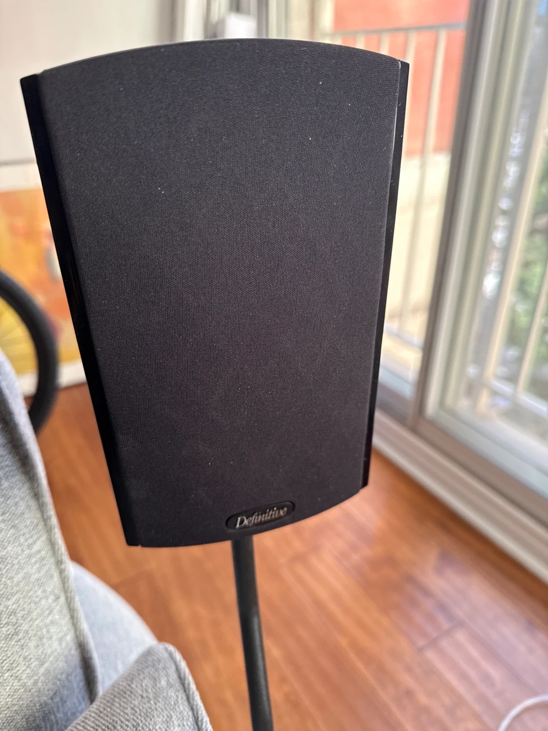 Selling a pair of Definitive Technology ProMonitor 800 bookshelf speakers. These compact speakers deliver clear sound for music and movies. They feature binding post terminals for secure connections.