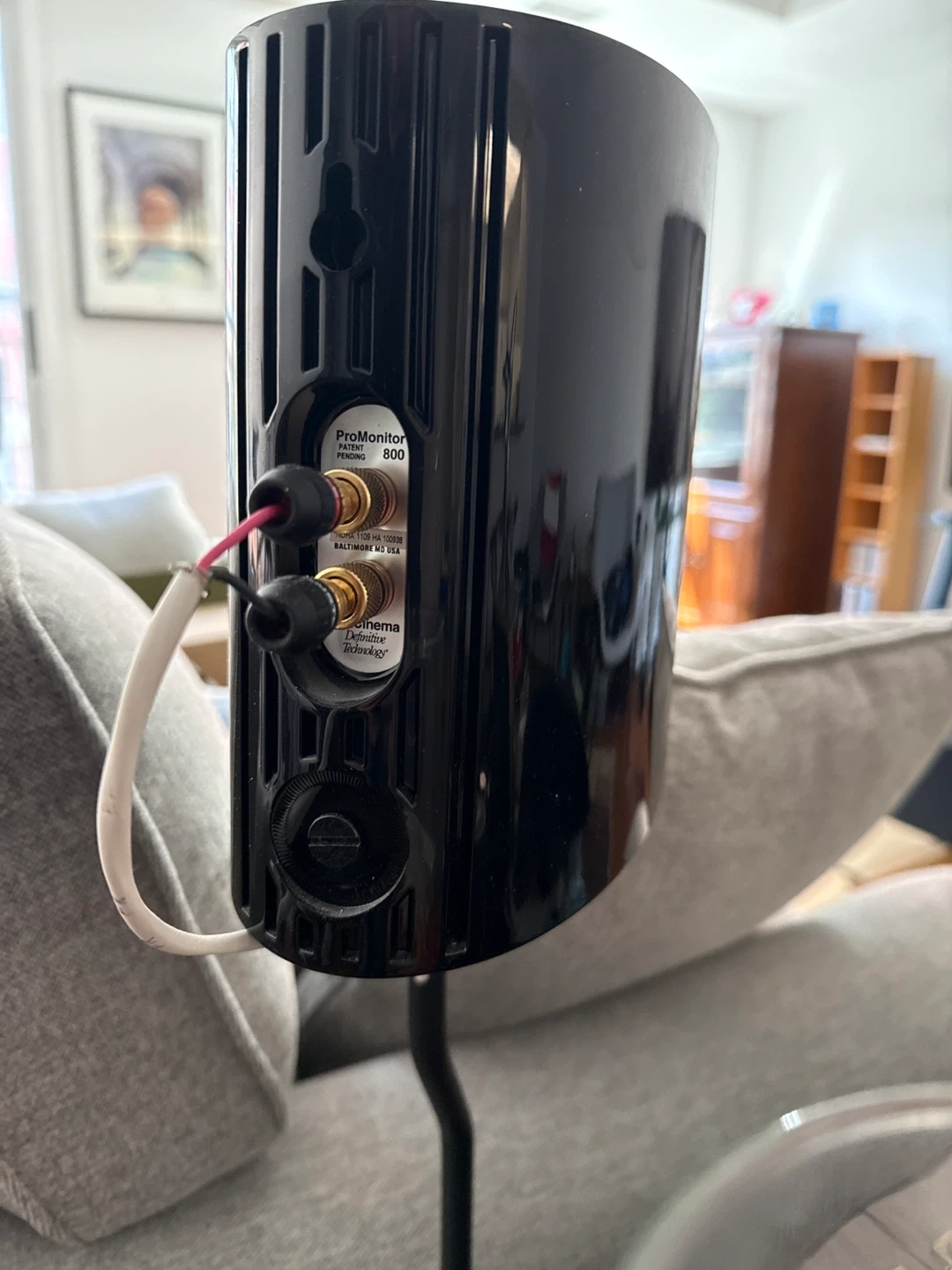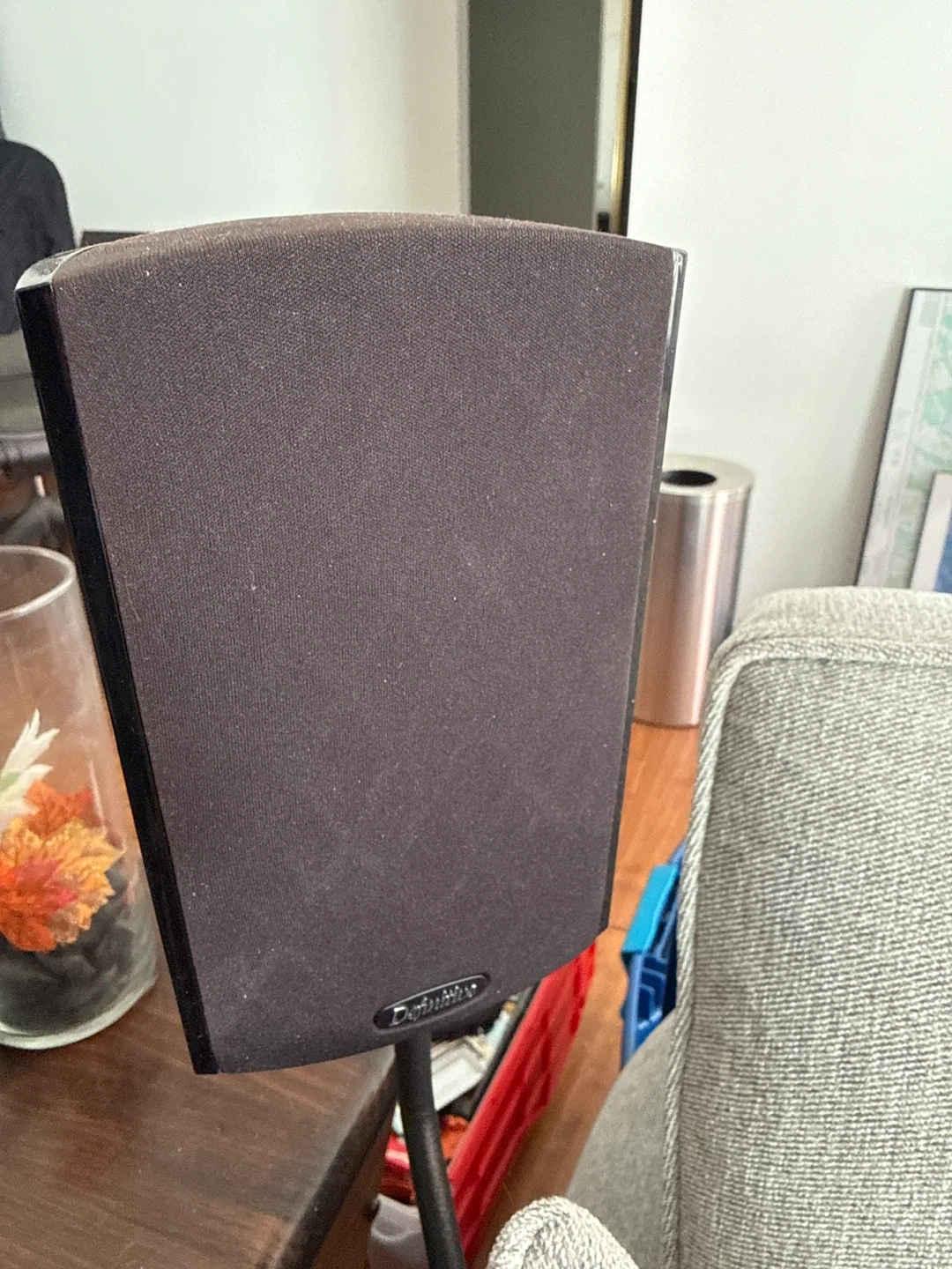 Selling a pair of Definitive Technology ProMonitor 800 bookshelf speakers. These compact speakers deliver clear sound for music and movies. They feature binding post terminals for secure connections.