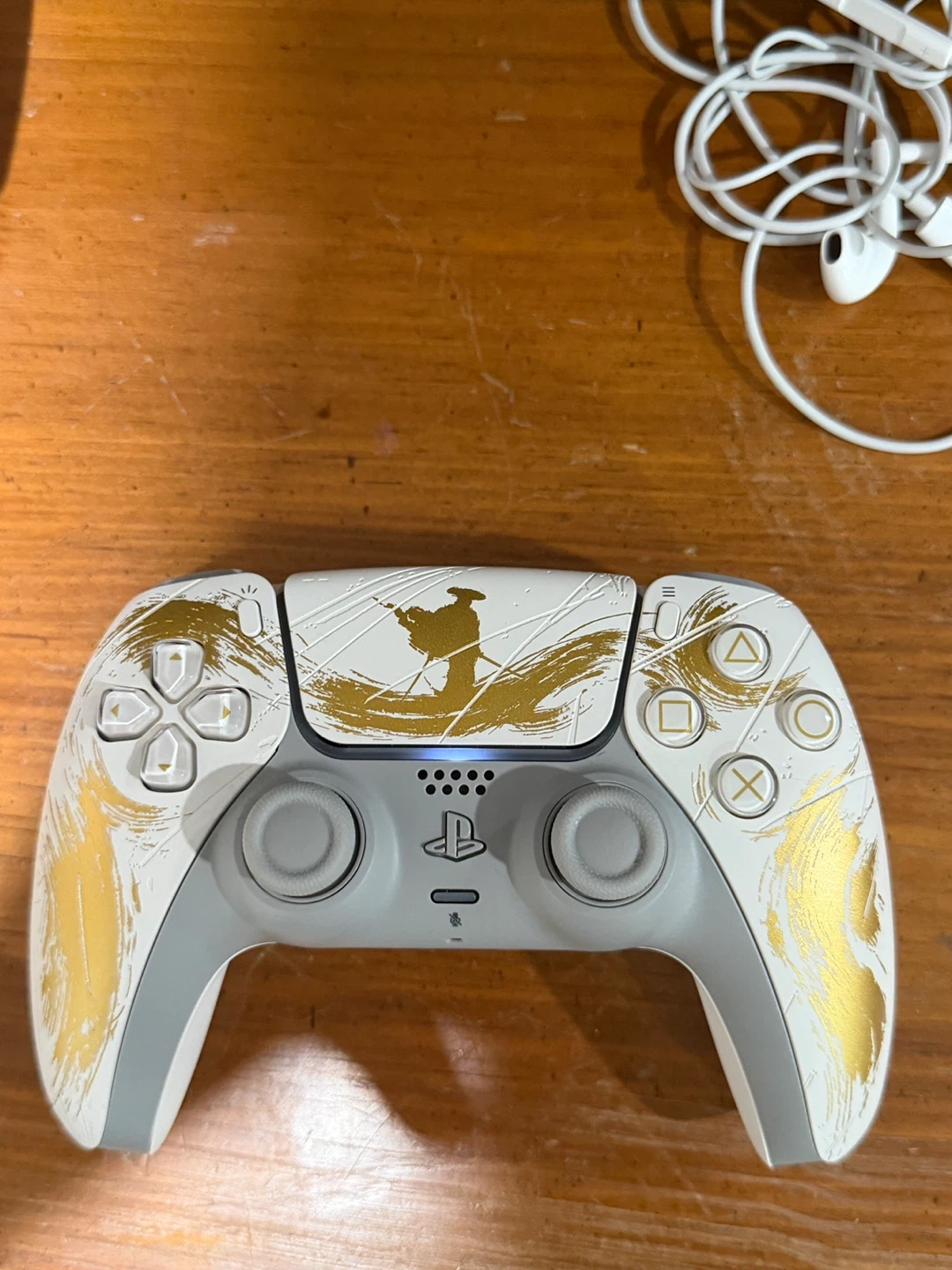This is the PlayStation DualSense Wireless Controller in the limited edition Ghost of Yotei design. It's compatible with PS5, PC, Mac, and Mobile devices. Enjoy immersive gaming with this unique controller!