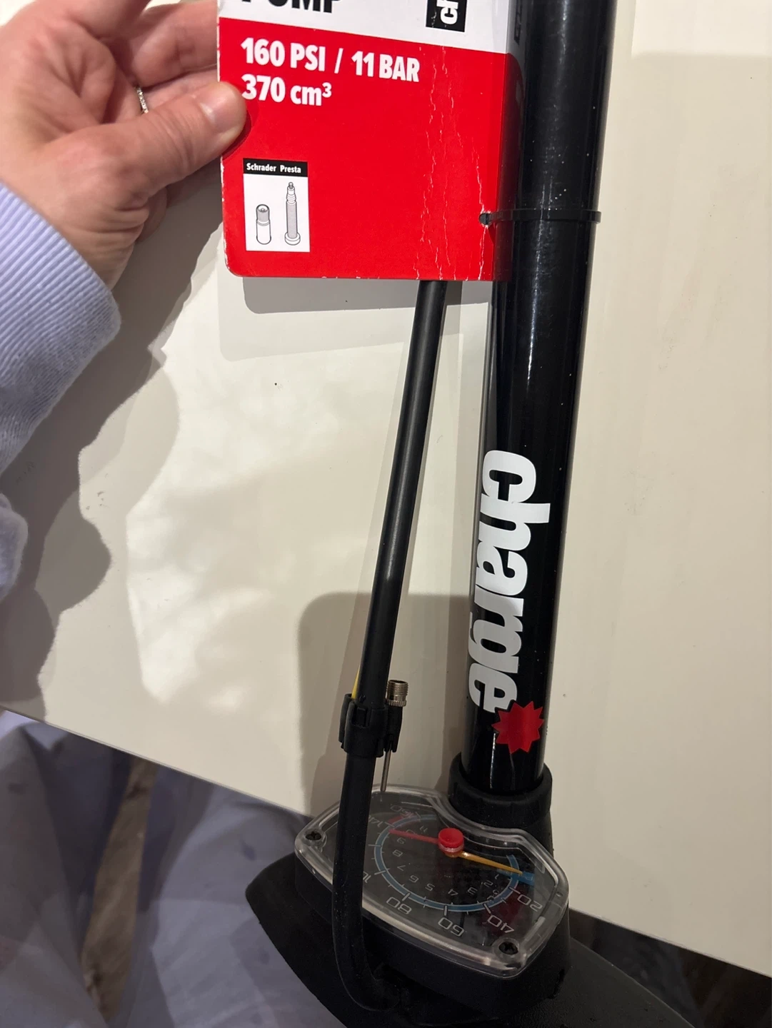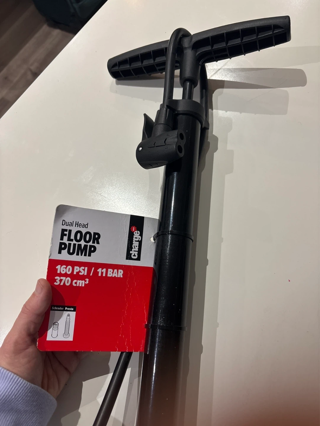 Buy & SellCharge Dual Head Floor PumpCharge Dual Head Floor Pump$25This Charge floor pump has a dual head and a gauge. It's rated for 160 PSI / 11 BAR. Great for topping up bike tires quickly!BrandChargeWHERE TO MEETCheck LocationView MapSELLERverifiedRobbieAlderwood1699 reviews0 chats·0 favorites·3 viewsSEND CHAT TO SELLERHi Robbie! I’m interested in your listing.Hi Robbie! I’m interested in your listing.Get the Karrot app to chatSign In to chat