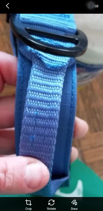 . It's made of durable nylon webbing with a soft inner lining for comfort.