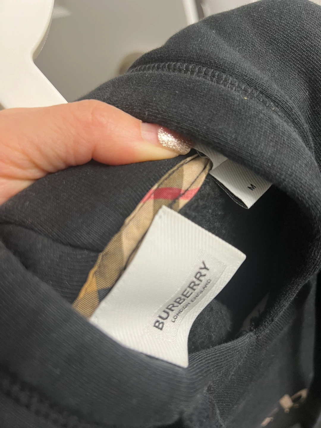 Selling a black Burberry London hoodie in size medium. It's in great condition and ready for a new owner! The classic Burberry logo adds a touch of style to this comfortable hoodie