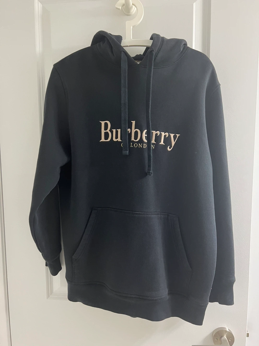 Selling a black Burberry London hoodie in size medium. It's in great condition and ready for a new owner! The classic Burberry logo adds a touch of style to this comfortable hoodie