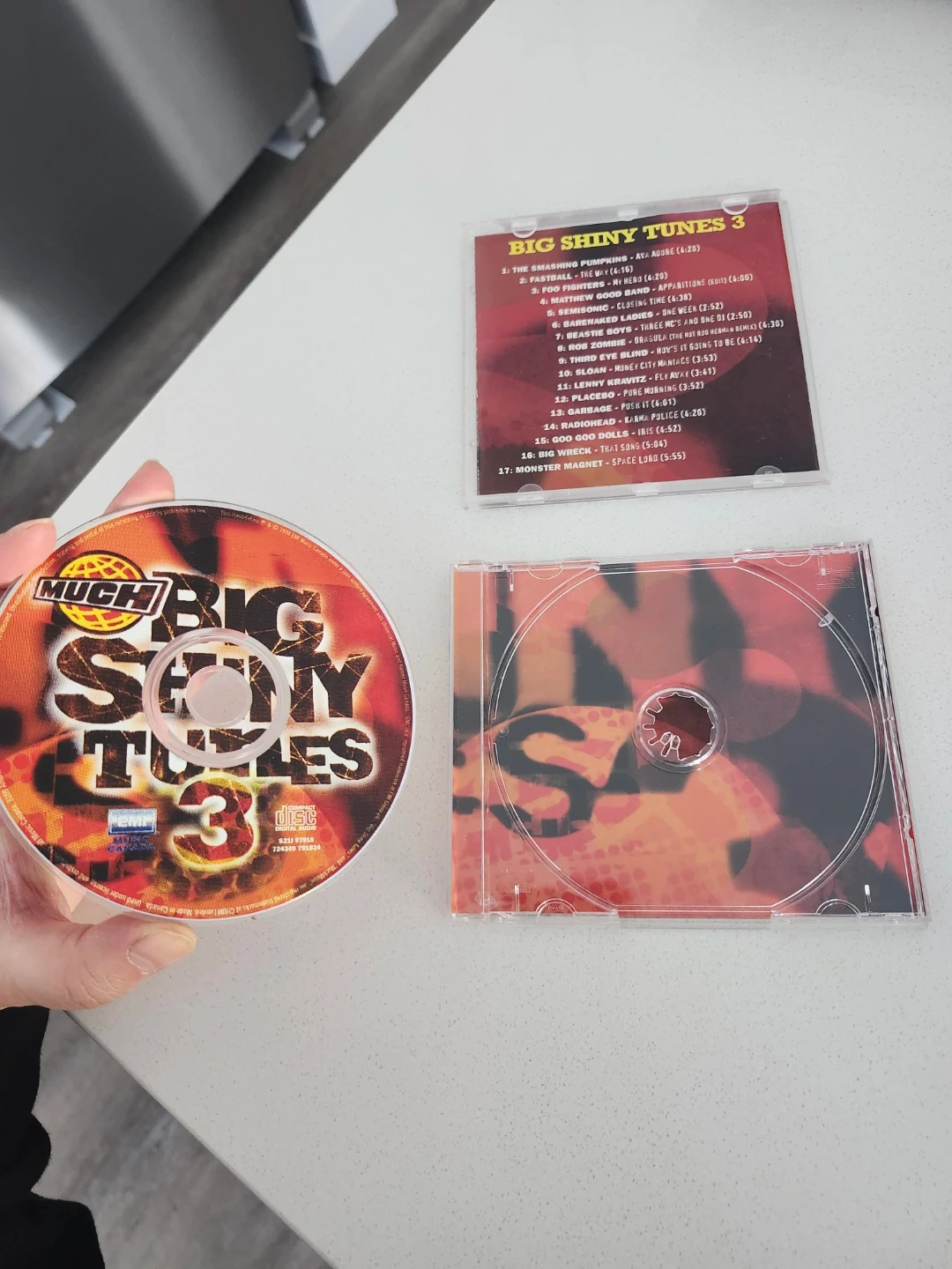 This is the Big Shiny Tunes 3 CD compilation featuring a variety of artists. It includes 17 tracks from popular bands like The Smashing Pumpkins, Foo Fighters, and Radiohead. The CD comes in its original jewel case.