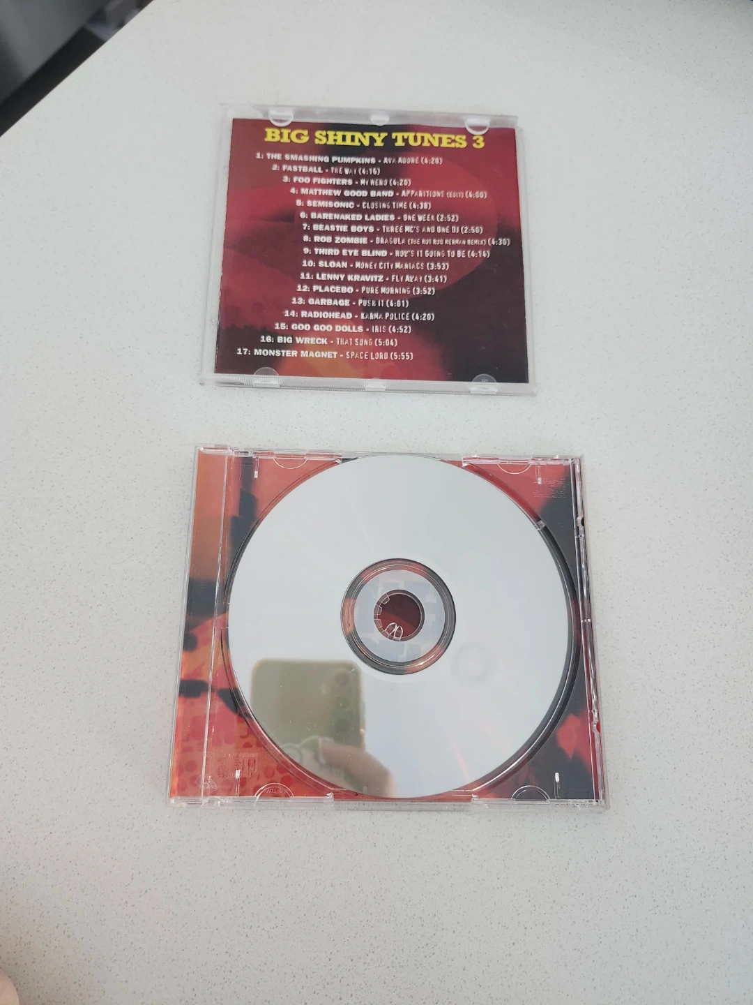 This is the Big Shiny Tunes 3 CD compilation featuring a variety of artists. It includes 17 tracks from popular bands like The Smashing Pumpkins, Foo Fighters, and Radiohead. The CD comes in its original jewel case.