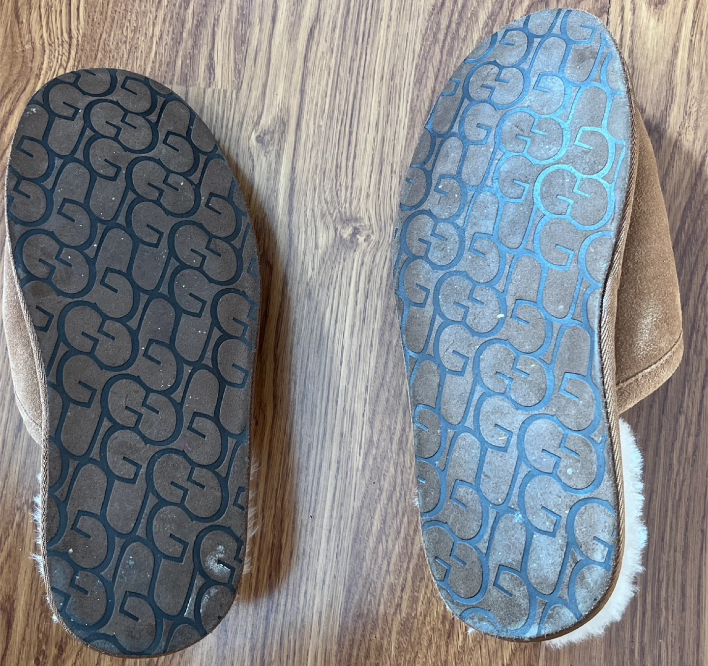 Cozy UGG slippers crafted from suede with a warm sheepskin lining. These slip-on house shoes are perfect for keeping your feet toasty indoors. Features a durable sole for indoor and light outdoor use.
