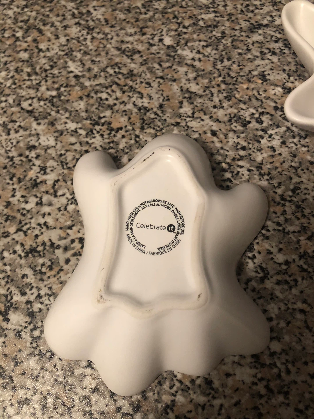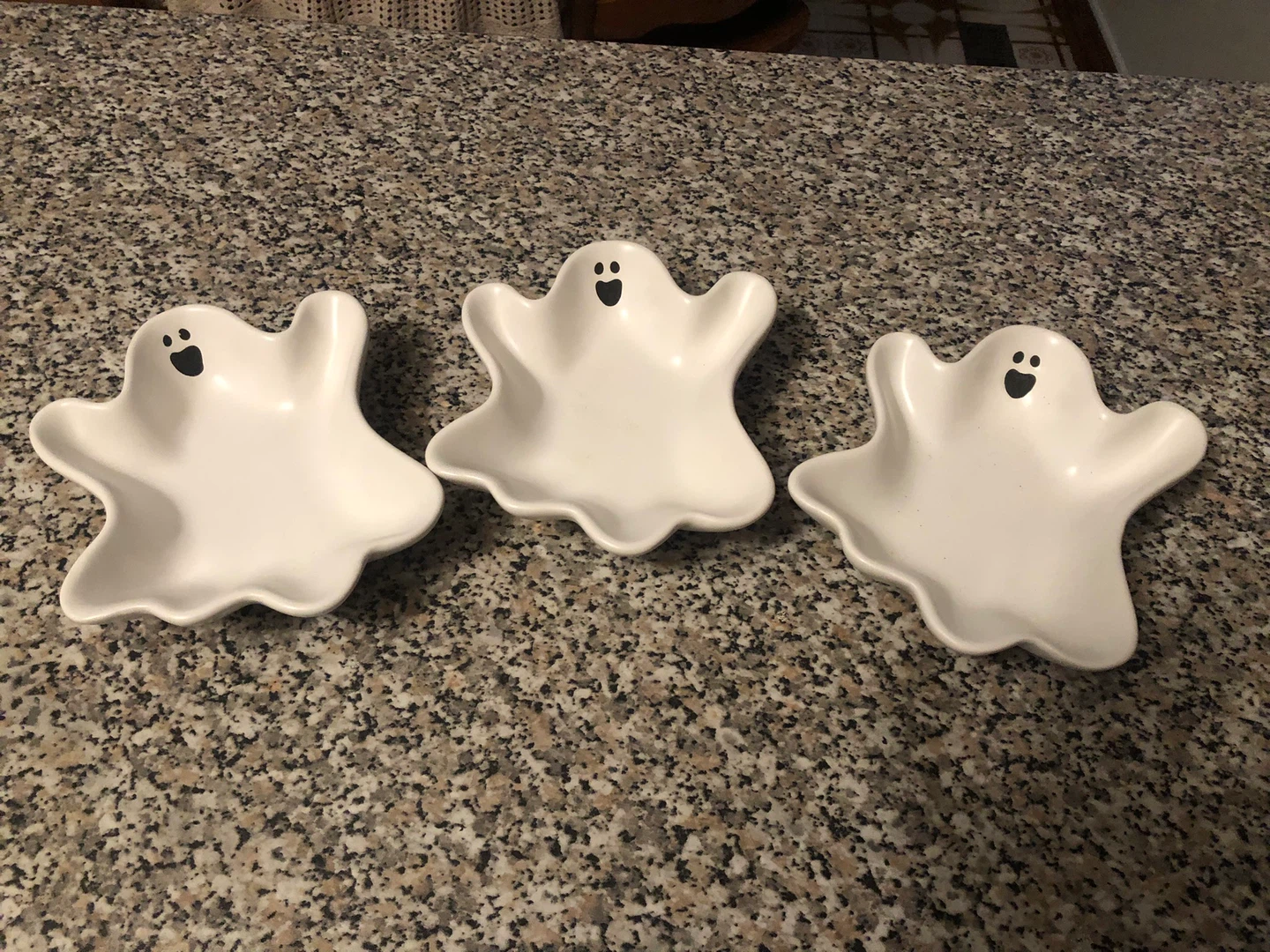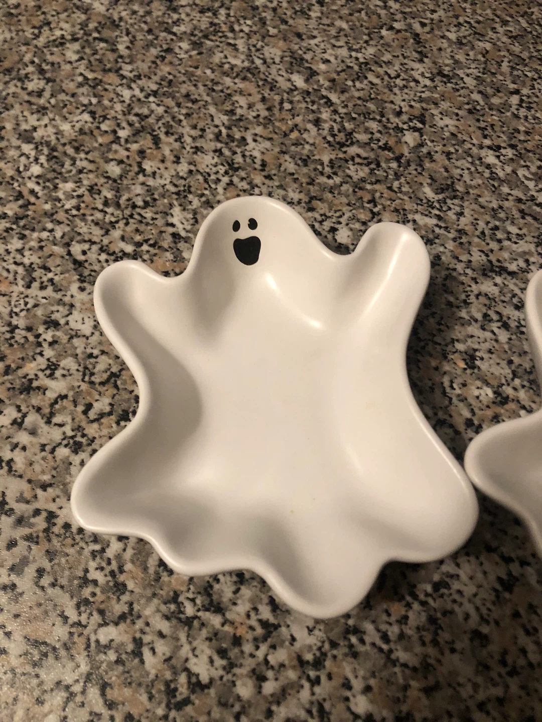 Cute ghost-shaped dishes! They're perfect for Halloween or just adding a spooky touch to your decor. They are hand wash only and microwave safe