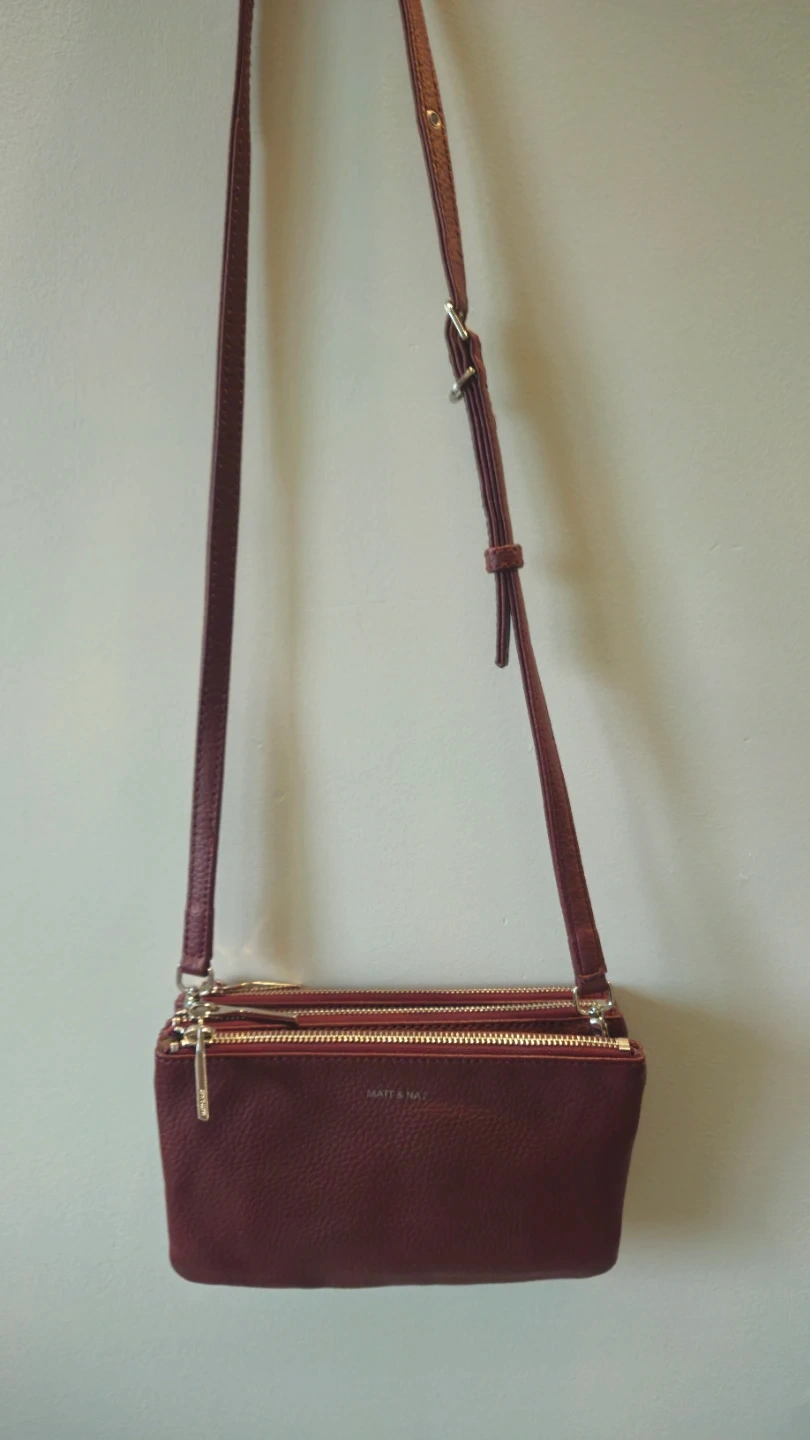 A lovely brown crossbody bag from Matt & Nat! It's in great condition and ready for a new home. Perfect for carrying your essentials while keeping your hands free