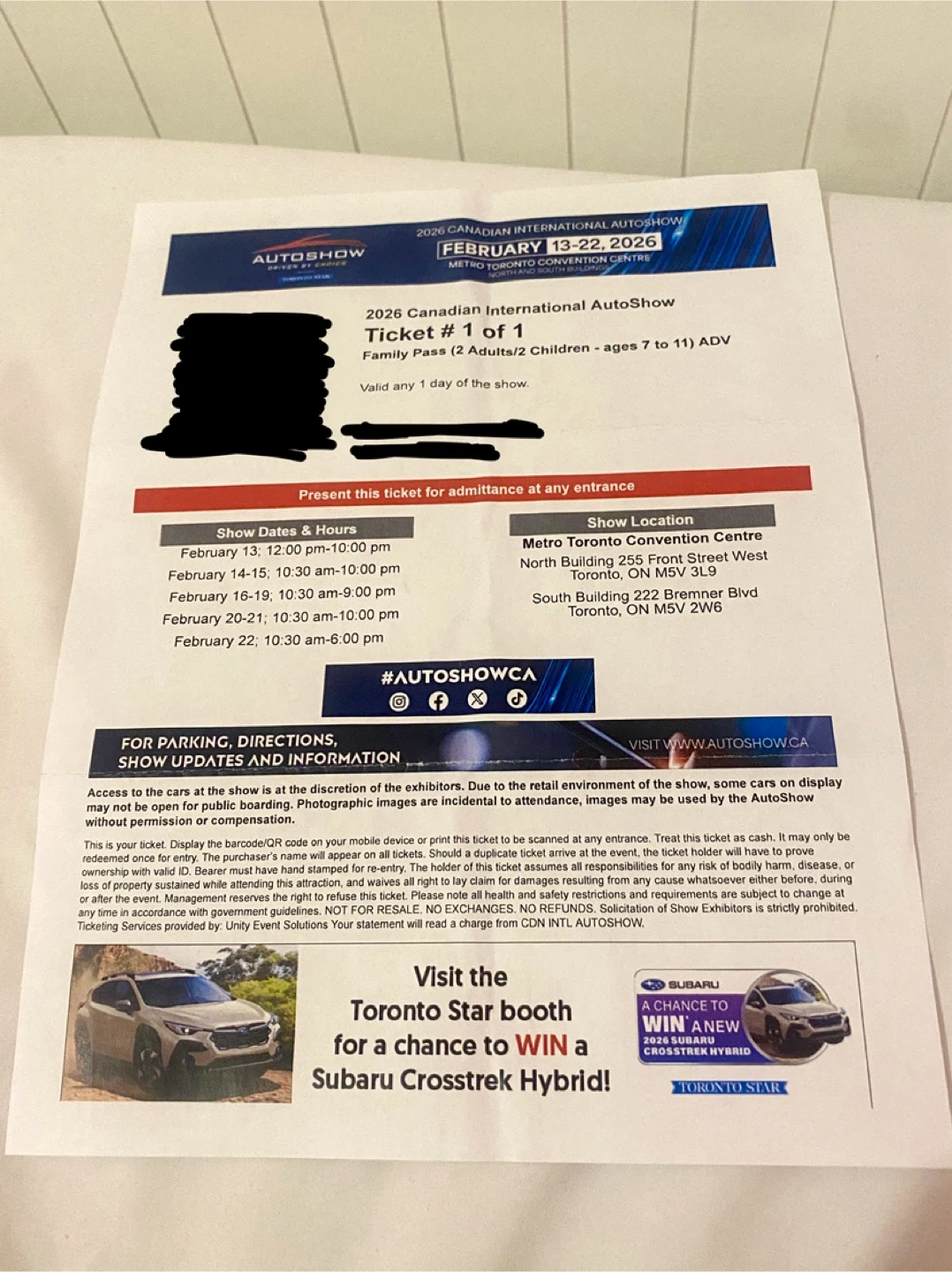 2026 Canadian International AutoShow Family Pass Ticket