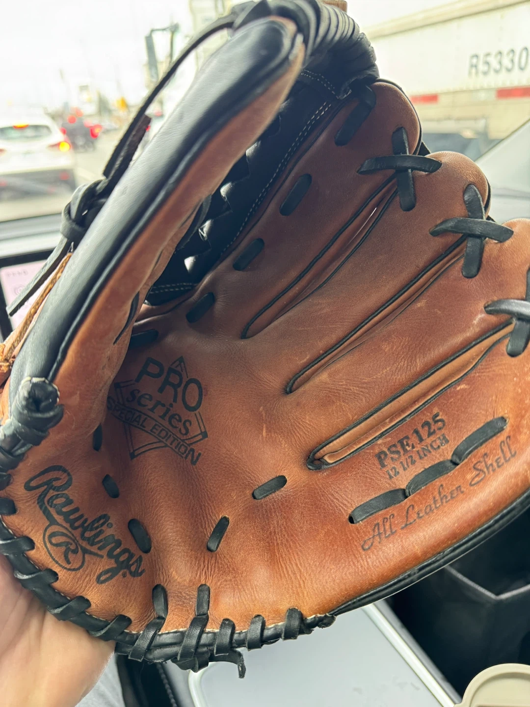 Rawlings Pro Series Special Edition baseball glove. PSE125 model, 12 1/2 inch size. Features an all-leather shell. This glove would be useful for any baseball player looking for a quality mitt.