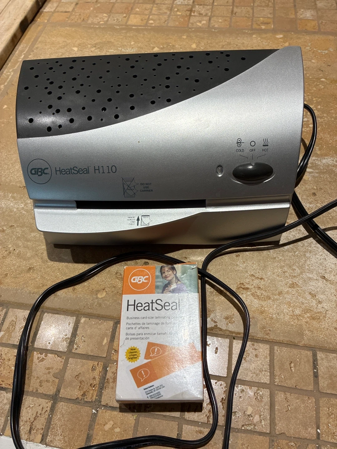41Selling a GBC HeatSeal H110 laminator! It's in good condition and ready to help you laminate your documents and business cards. Comes with a box of GBC HeatSeal business card-size laminating pouches.