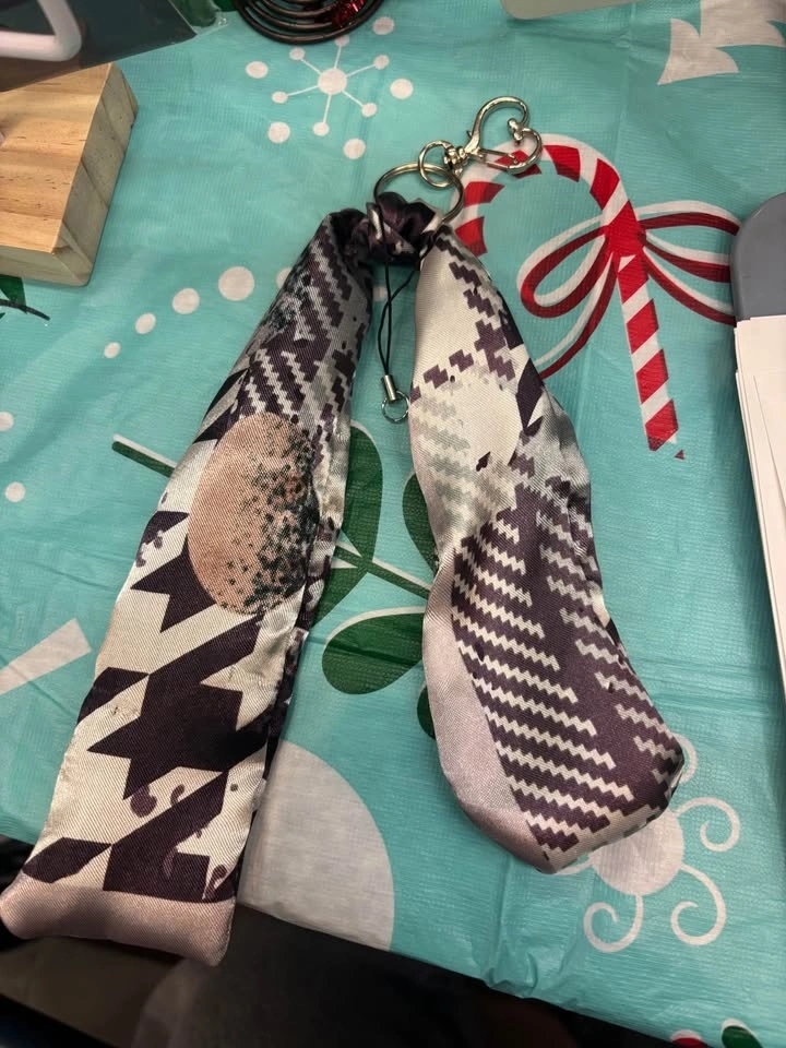 These are unique purse charms crafted from upcycled vintage scarves. Each one is a one-of-a-kind accessory to add a special touch to your bag. Let me know if you're interested!