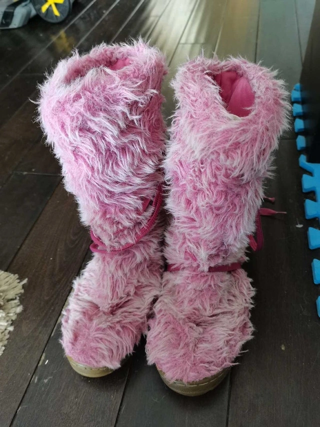 These pre-owned pink fuzzy boots are perfect for keeping your feet warm and stylish! They feature a unique fuzzy exterior and a comfortable interior lining. The boots show signs of wear but are still in good condition for casual use. If the ad is up, they're still available! Don't miss out on these fun and quirky boots—they're waiting to step into your life!
