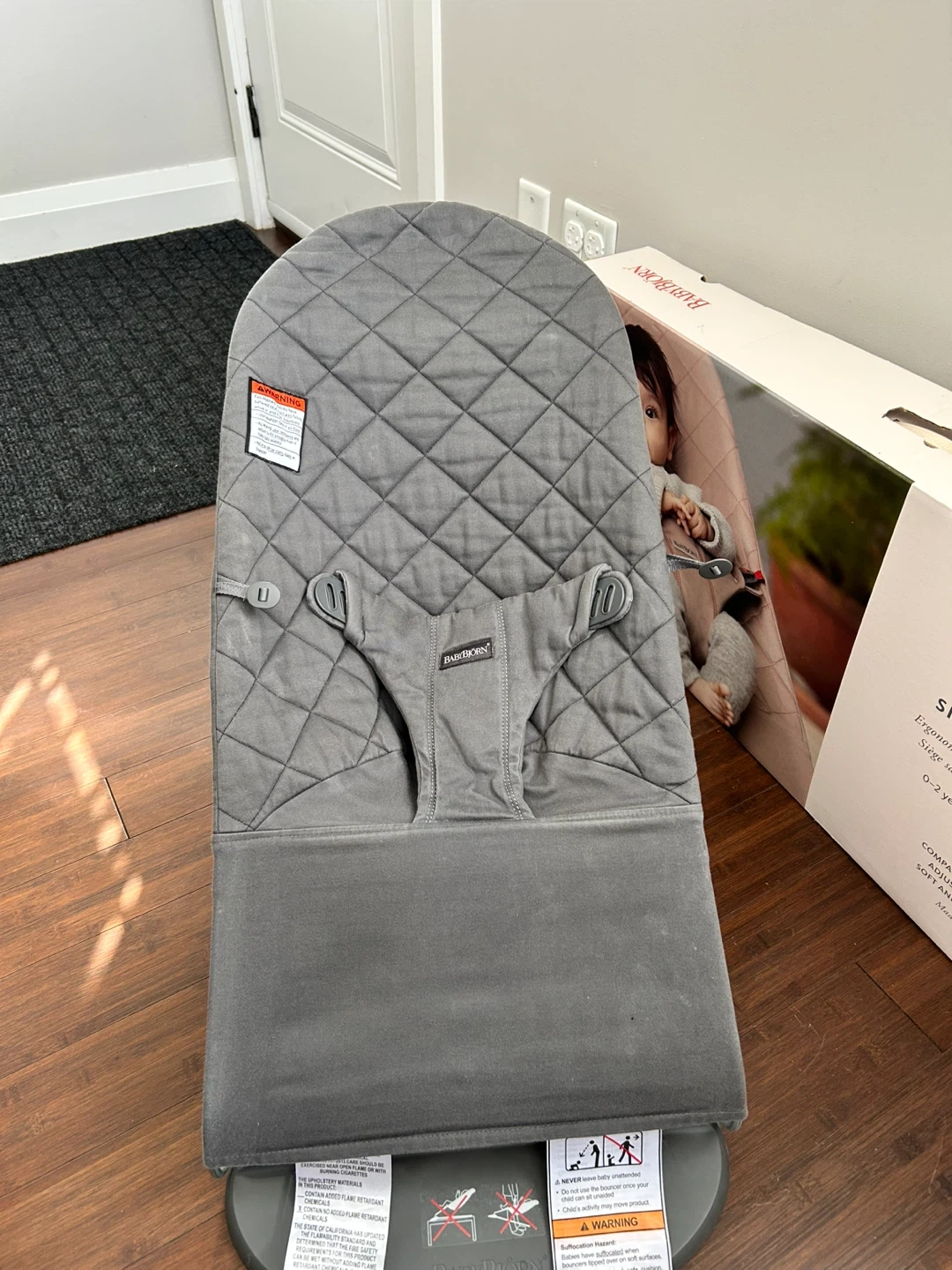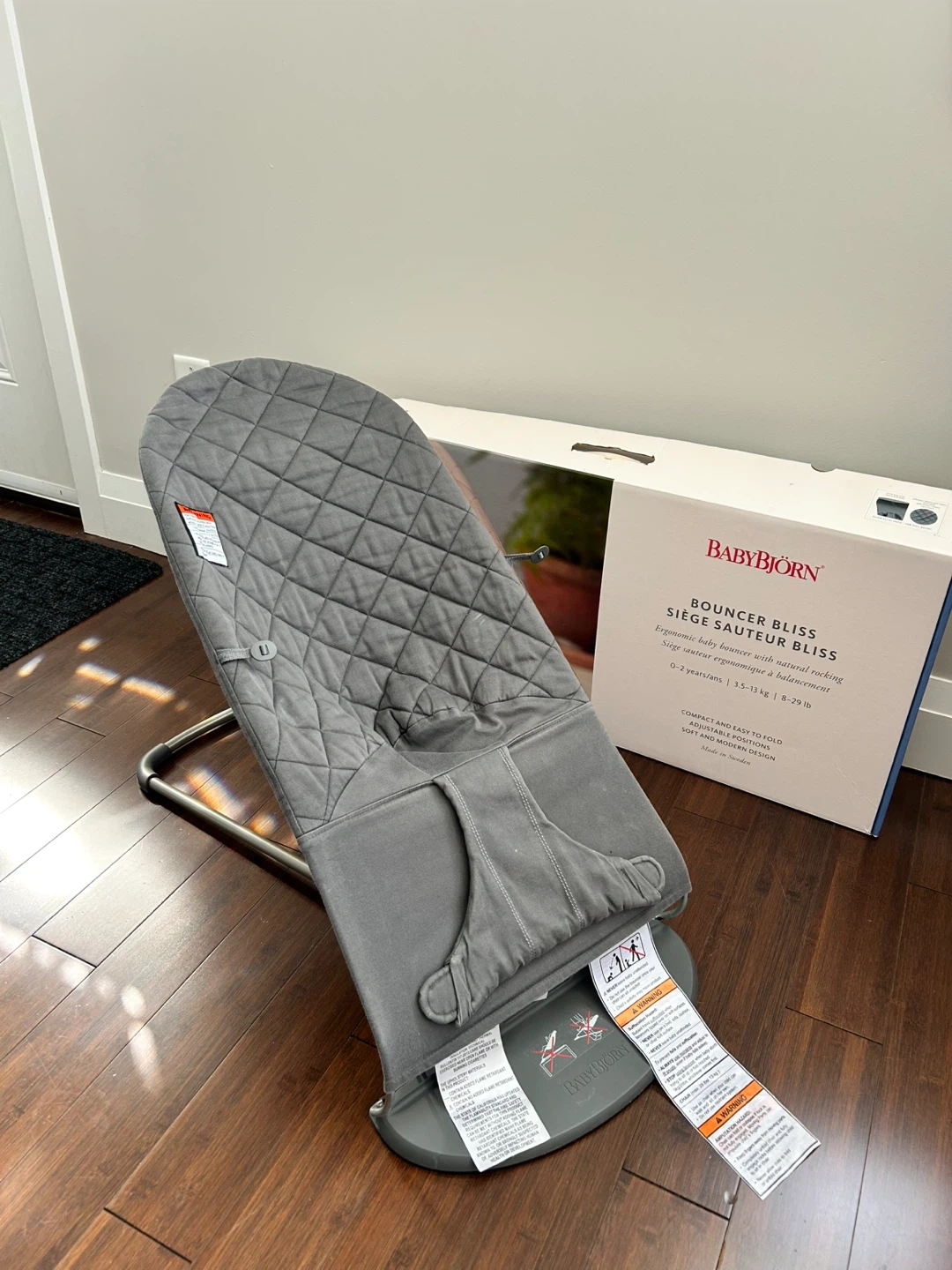Ergonomic baby bouncer with natural rocking. Suitable for 0-2 years, weighing 3.5-13 kg. Compact and easy to fold for simple storage. Soft and breathable design.