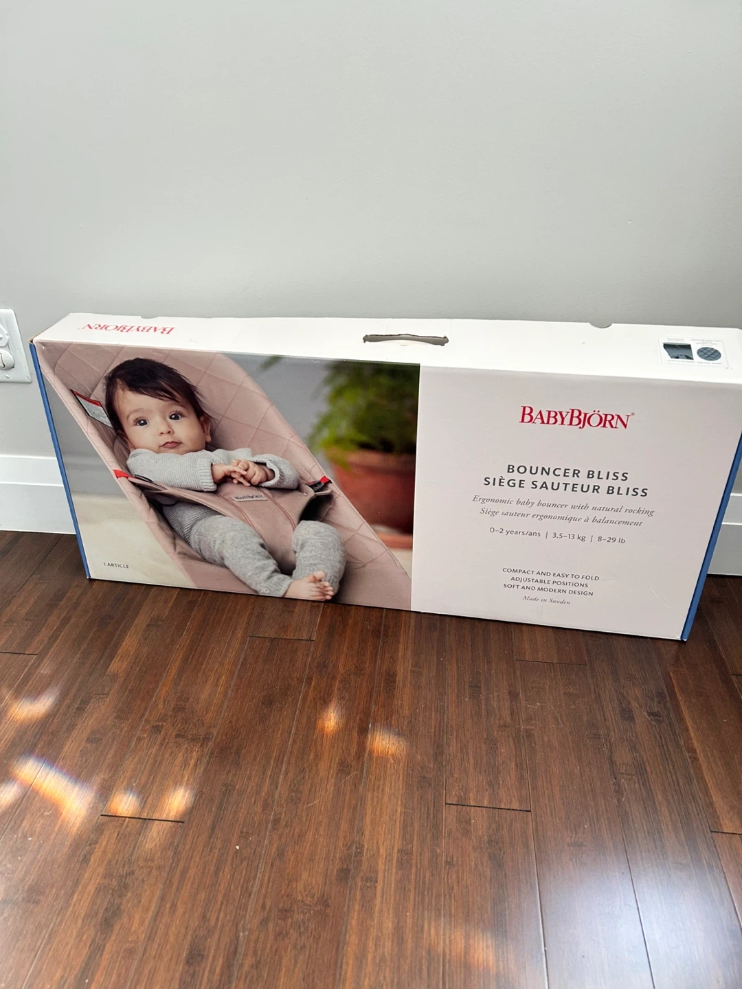 Ergonomic baby bouncer with natural rocking. Suitable for 0-2 years, weighing 3.5-13 kg. Compact and easy to fold for simple storage. Soft and breathable design.