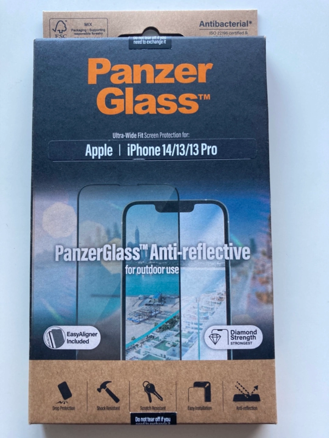 Ultra-wide fit screen protection for Apple iPhone 14/13 Pro. Anti-reflective for outdoor use. Includes EasyAligner. Drop protection, shock resistant, scratch resistant, easy installation, anti-reflection. Sealed