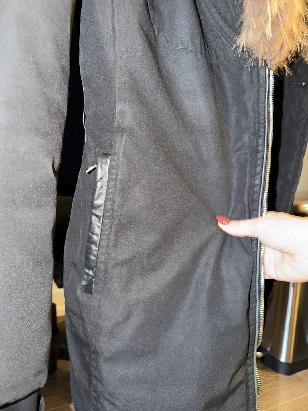 ✔️ Hood with fur-trim detail