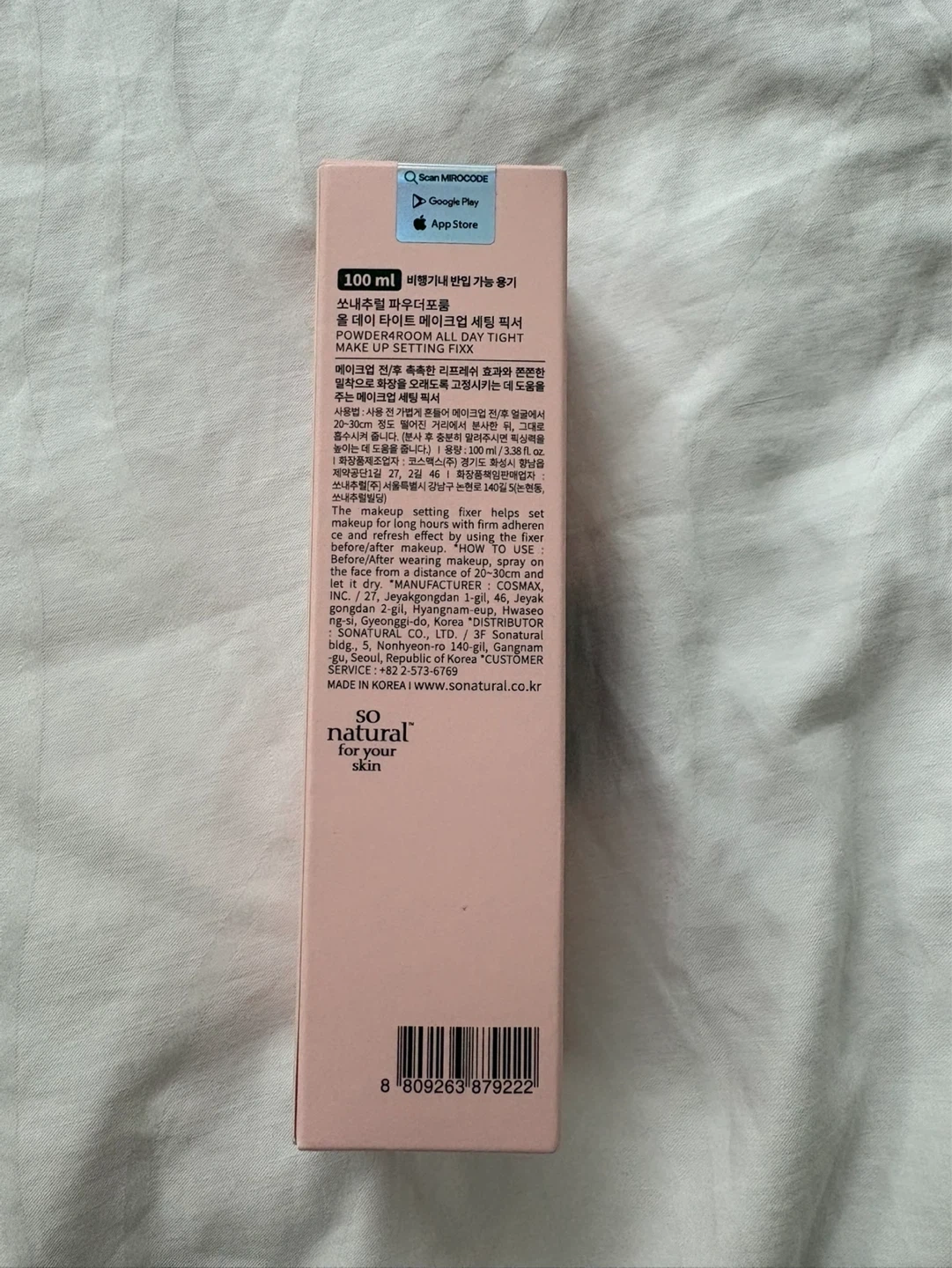 This makeup setting fixer helps set makeup and refreshes skin. It's 100ml and made in Korea. Great for keeping your makeup looking its best all day!