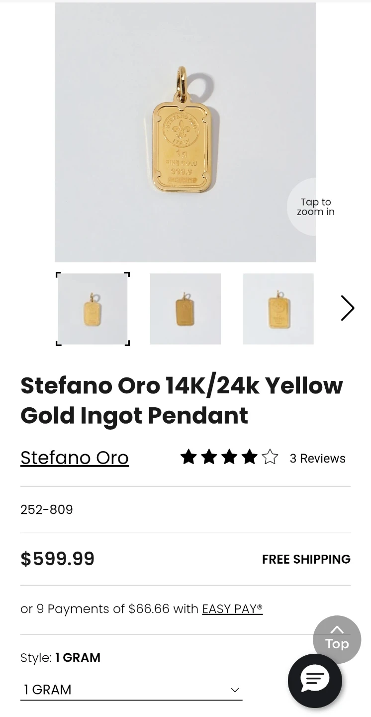 Selling a beautiful Stefano Oro 14K/24k yellow gold ingot pendant. This stylish pendant is made of fine gold 999.9 and would make a great addition to any jewelry collection! Originally bought for $599.99