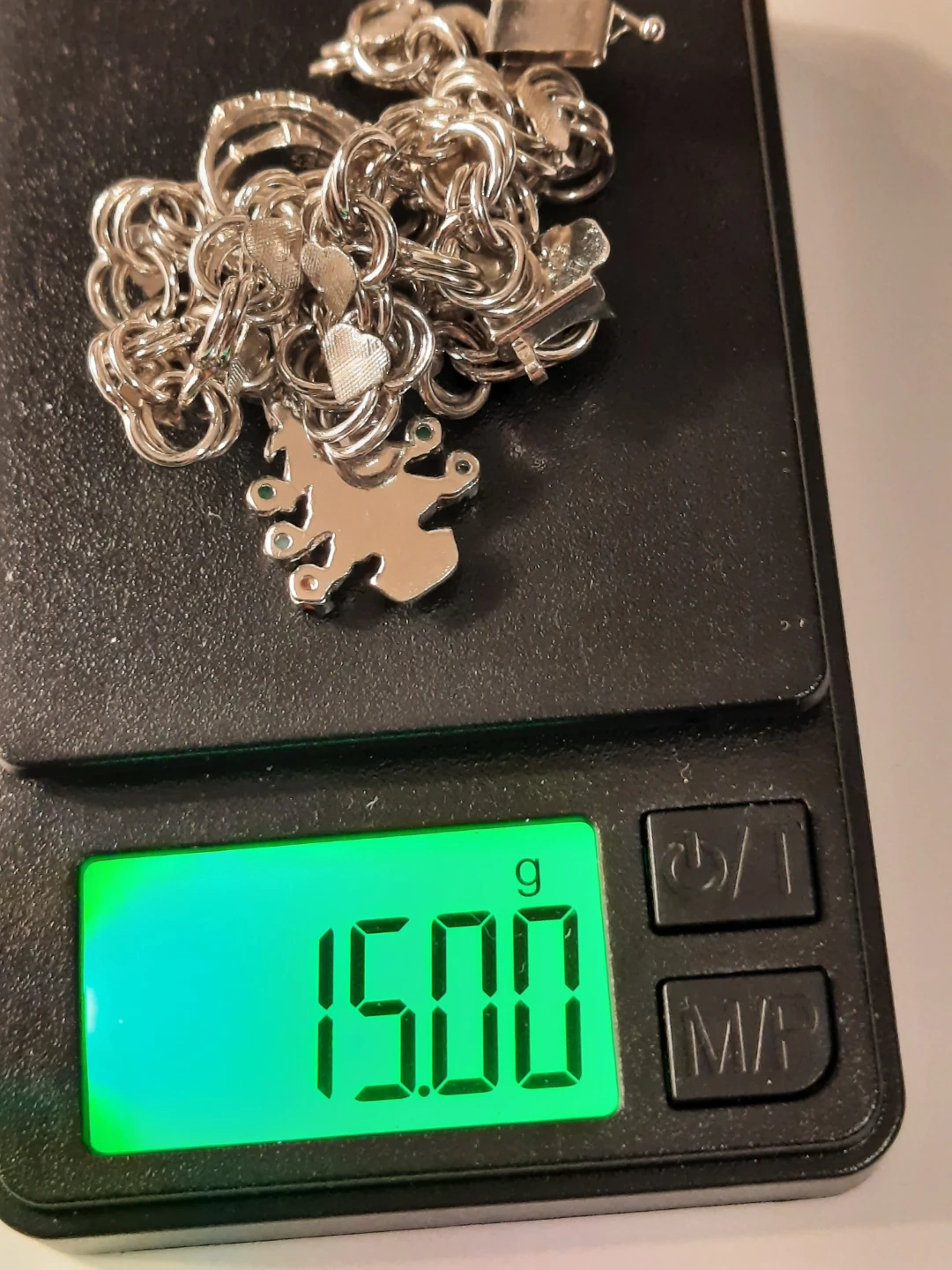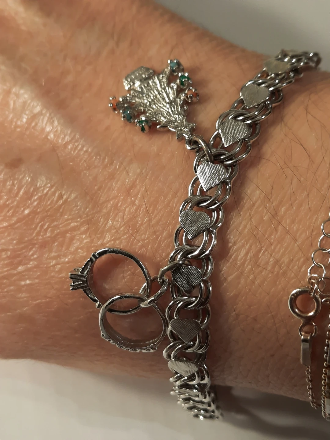 Sterling Silver Charm Bracelet with Christmas Tree & Rings