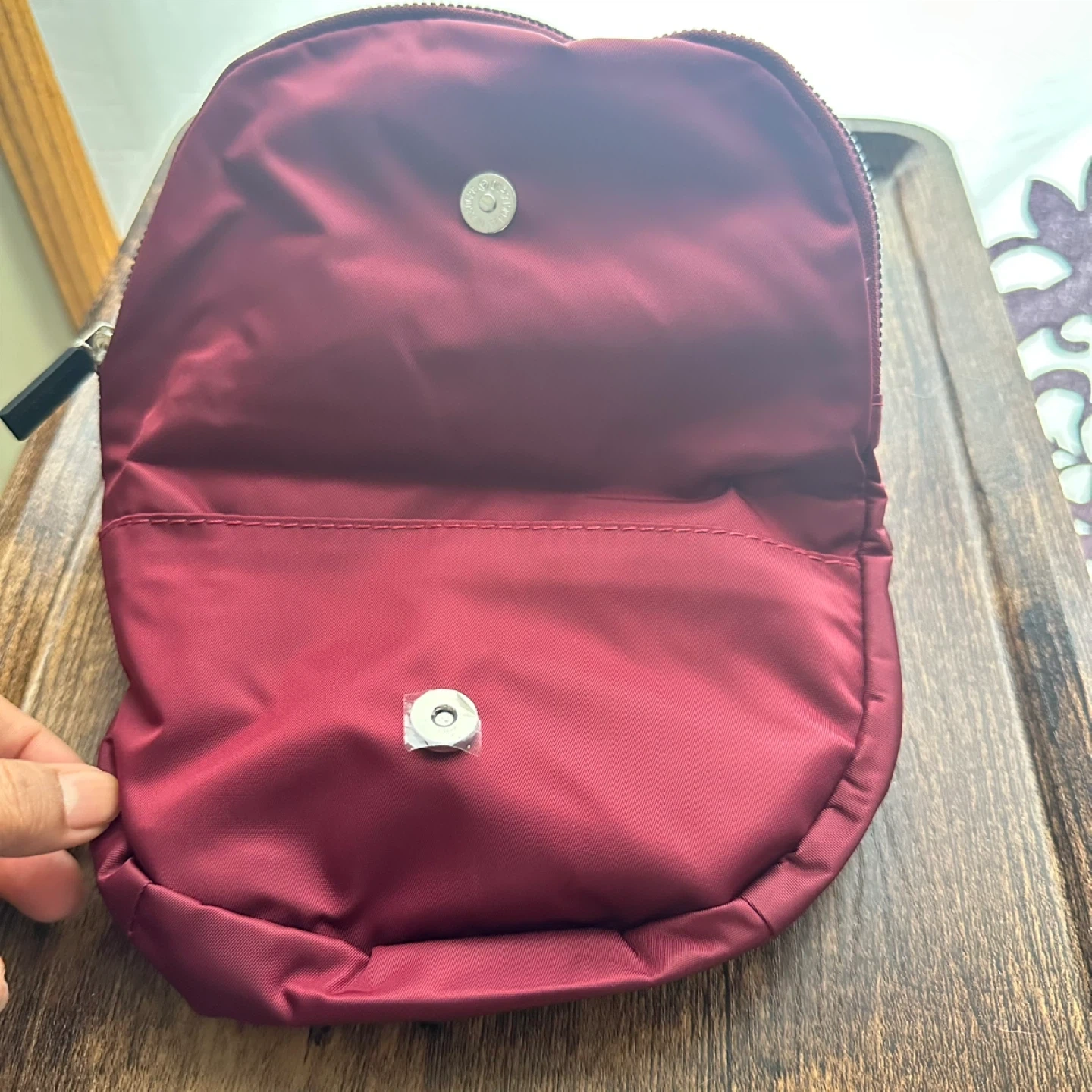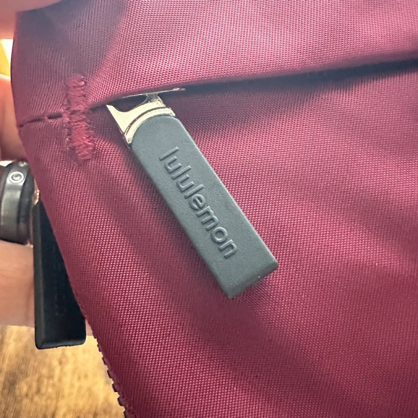 This Lululemon Everywhere Belt Bag is in a rich burgundy color. It's made of durable nylon and features a zippered main compartment with an interior slip pocket. Perfect for hands-free adventures!