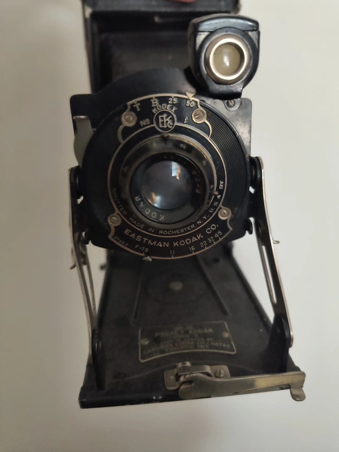 This is a vintage Eastman Kodak Co. folding camera. It's a model likely from the early 20th century, (over 100 years old) it can be used for decoration as the back is completely gone lol it would be fine on a shelf