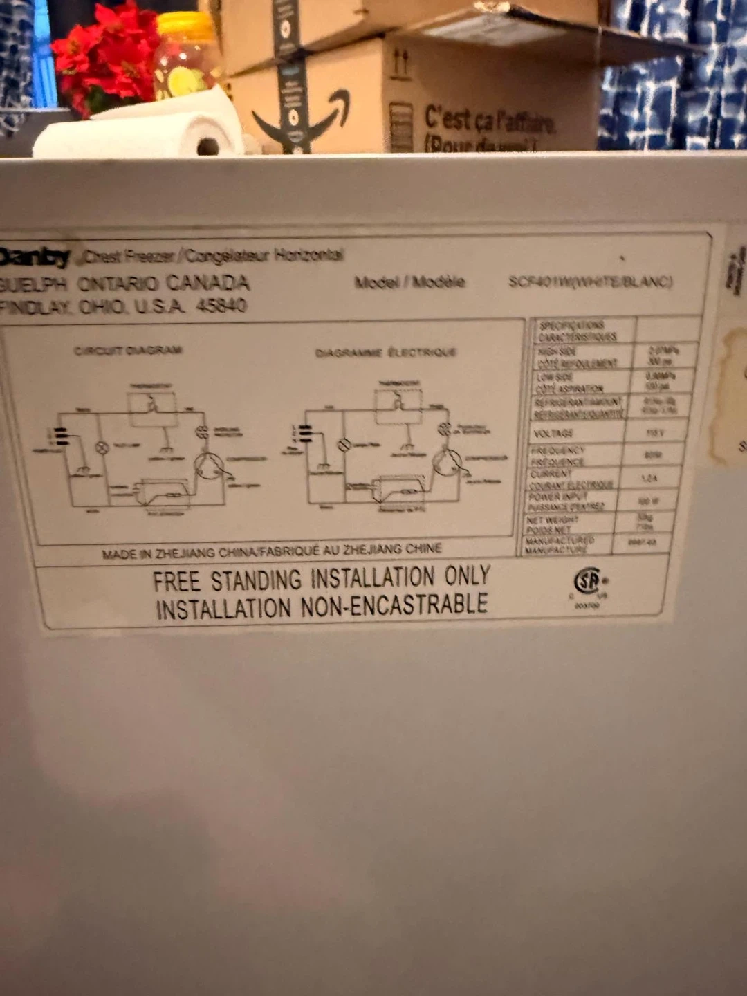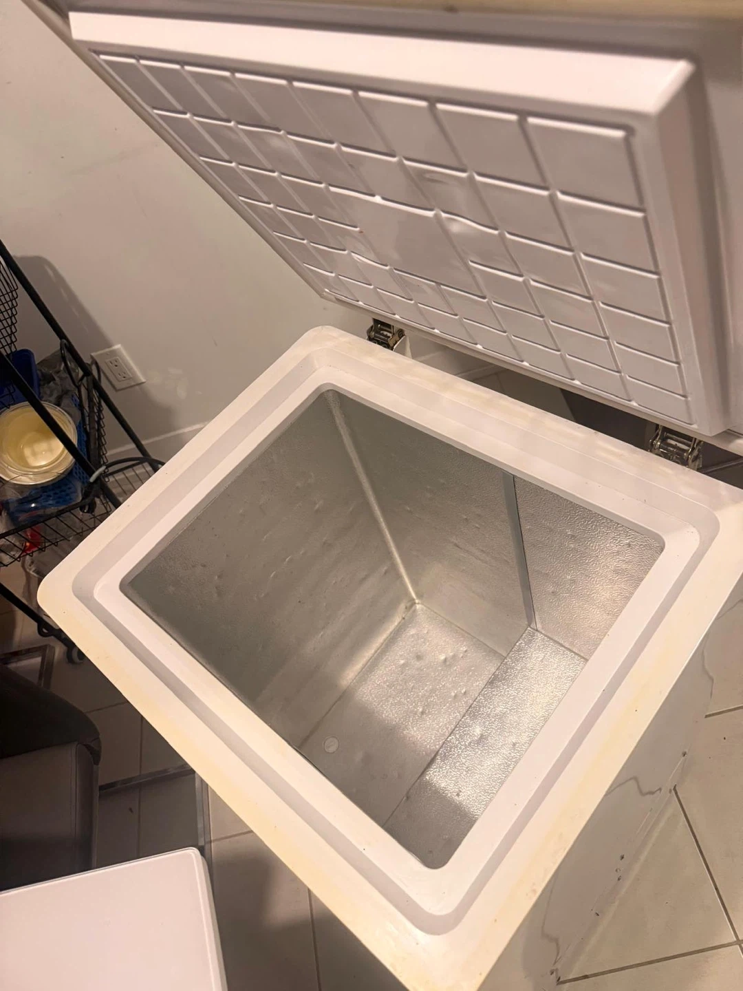 Small/medium freezer, works super excellent, 1 am buying a bigger one, no issues at all, rubber stopper to protect wall when opened. Pick up in Oshawa, I can deliver up to Whitby for $20
